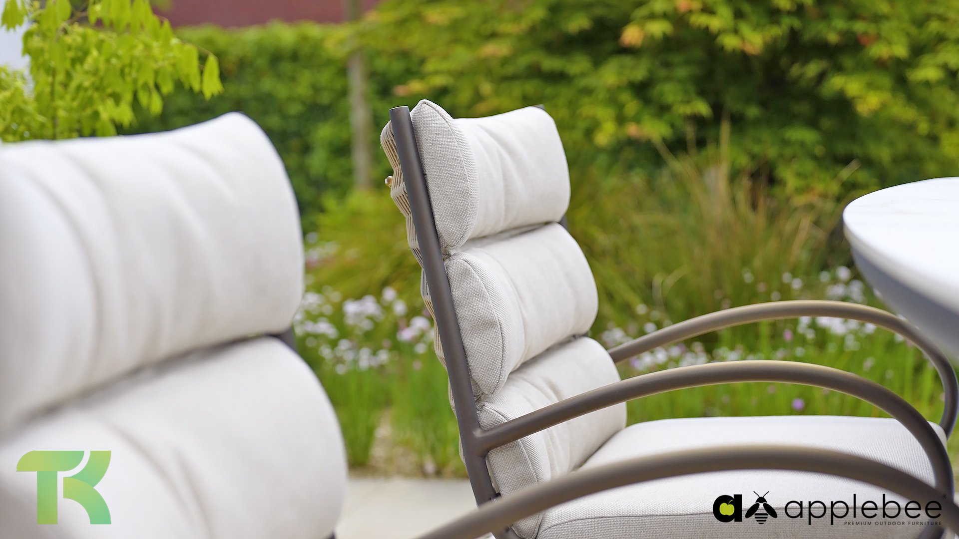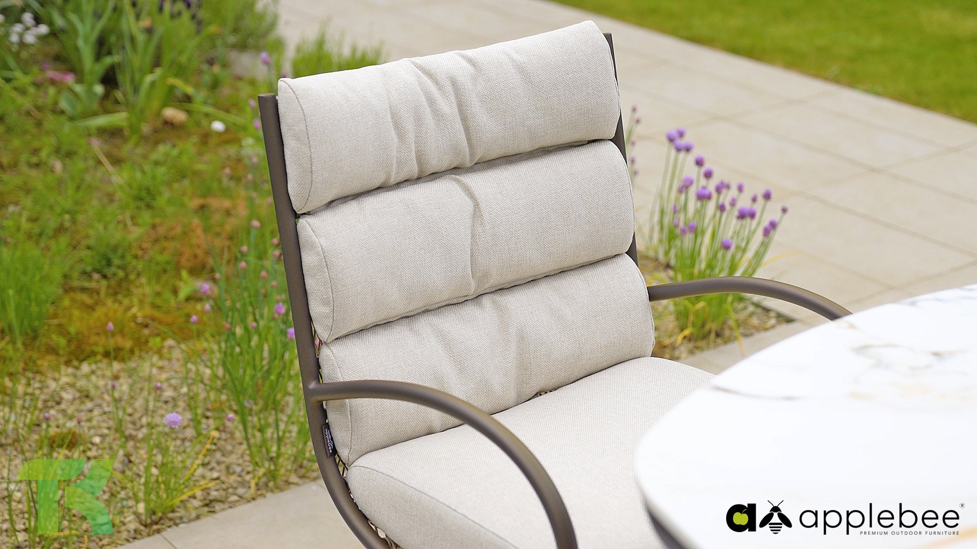 • Unieke BeeWett Technologie: De set is uitgerust met kussens in de zachte kleur Nature. Dankzij de speciale BeeWett technologie van Apple Bee zijn deze kussens vochtregulerend, drogen ze razendsnel na een regenbui en zijn ze uv-bestendig.