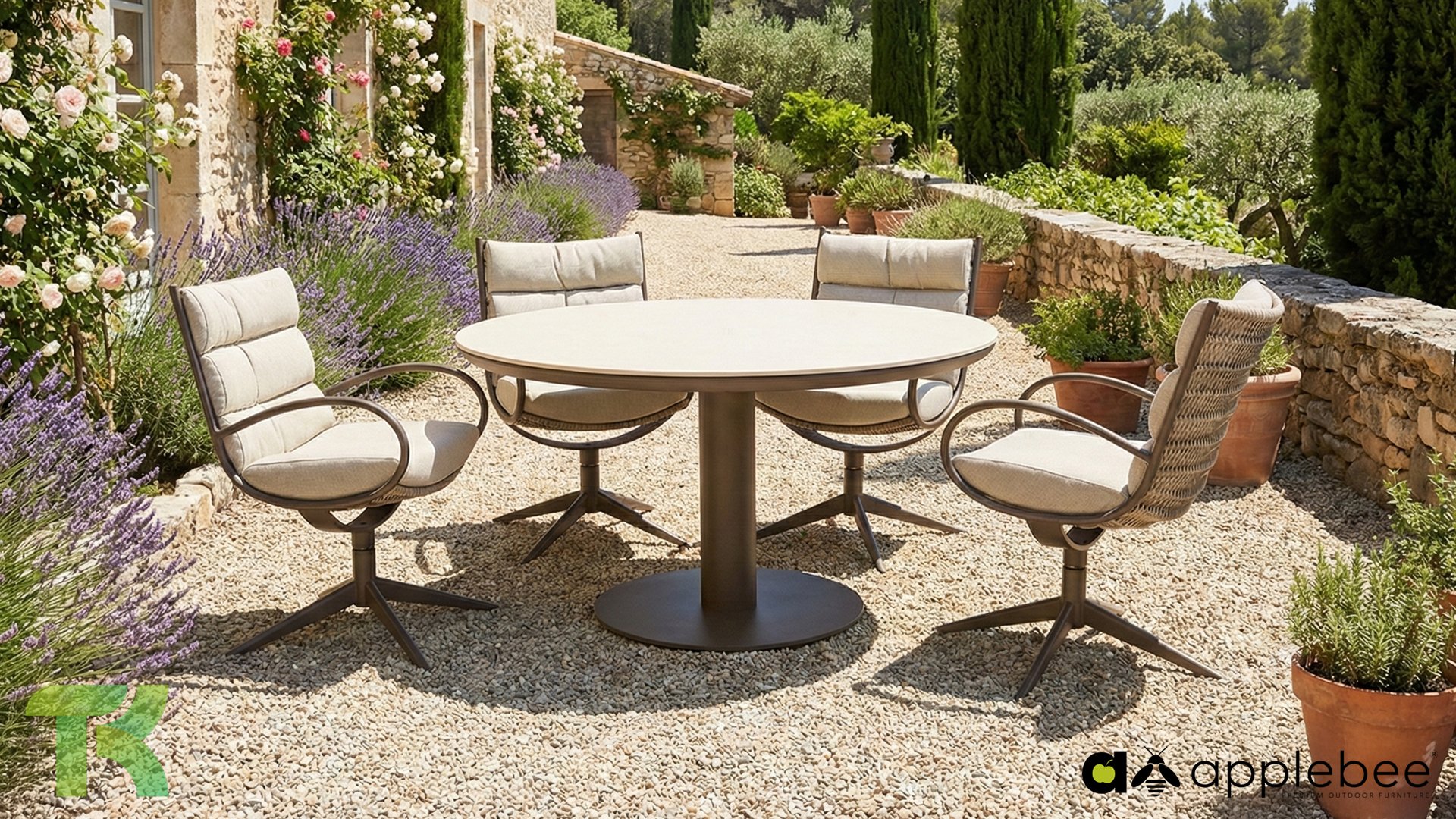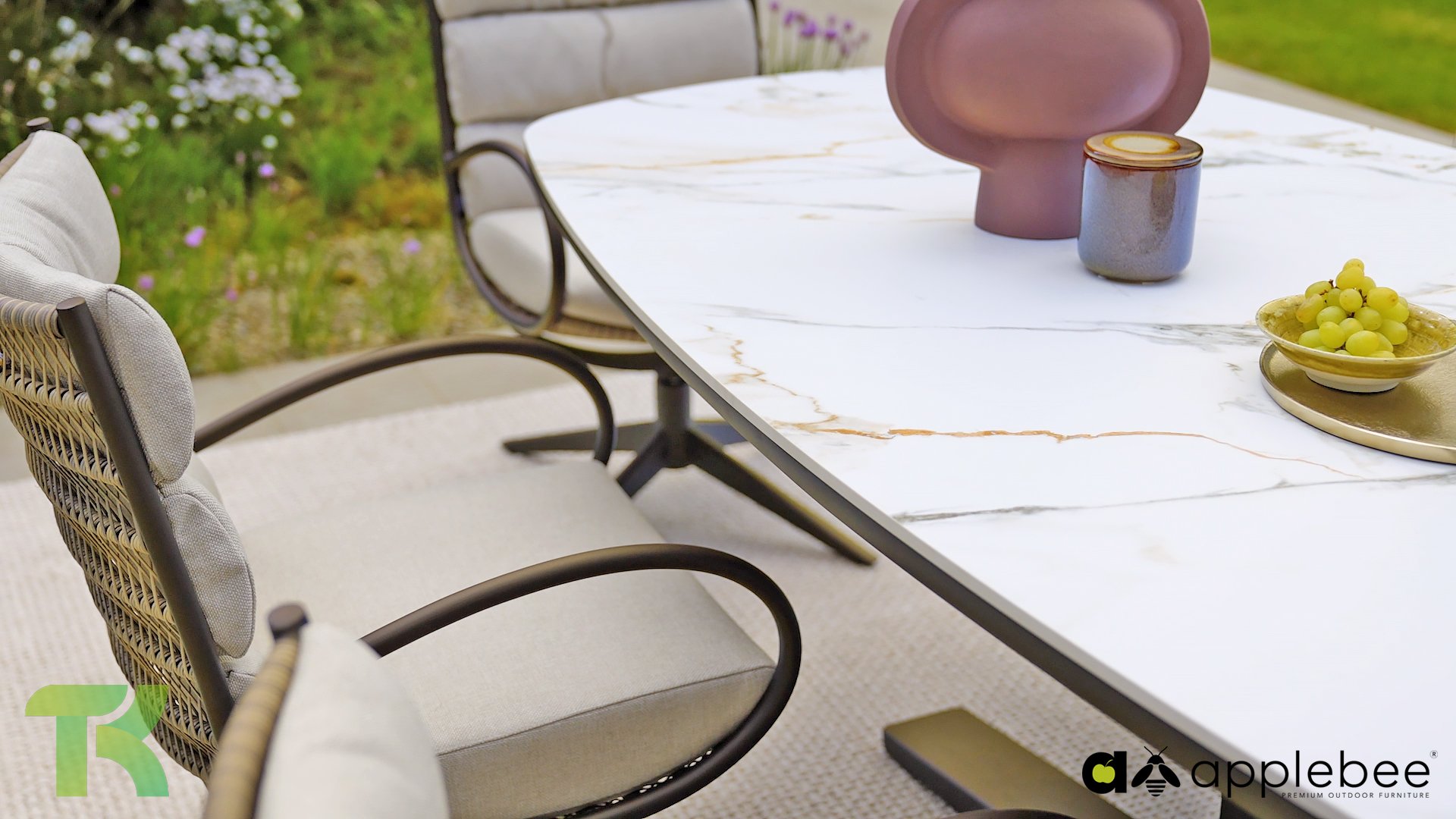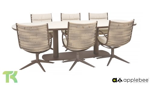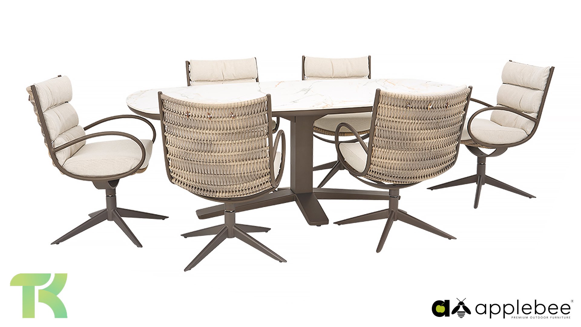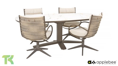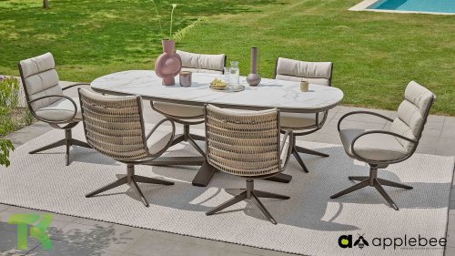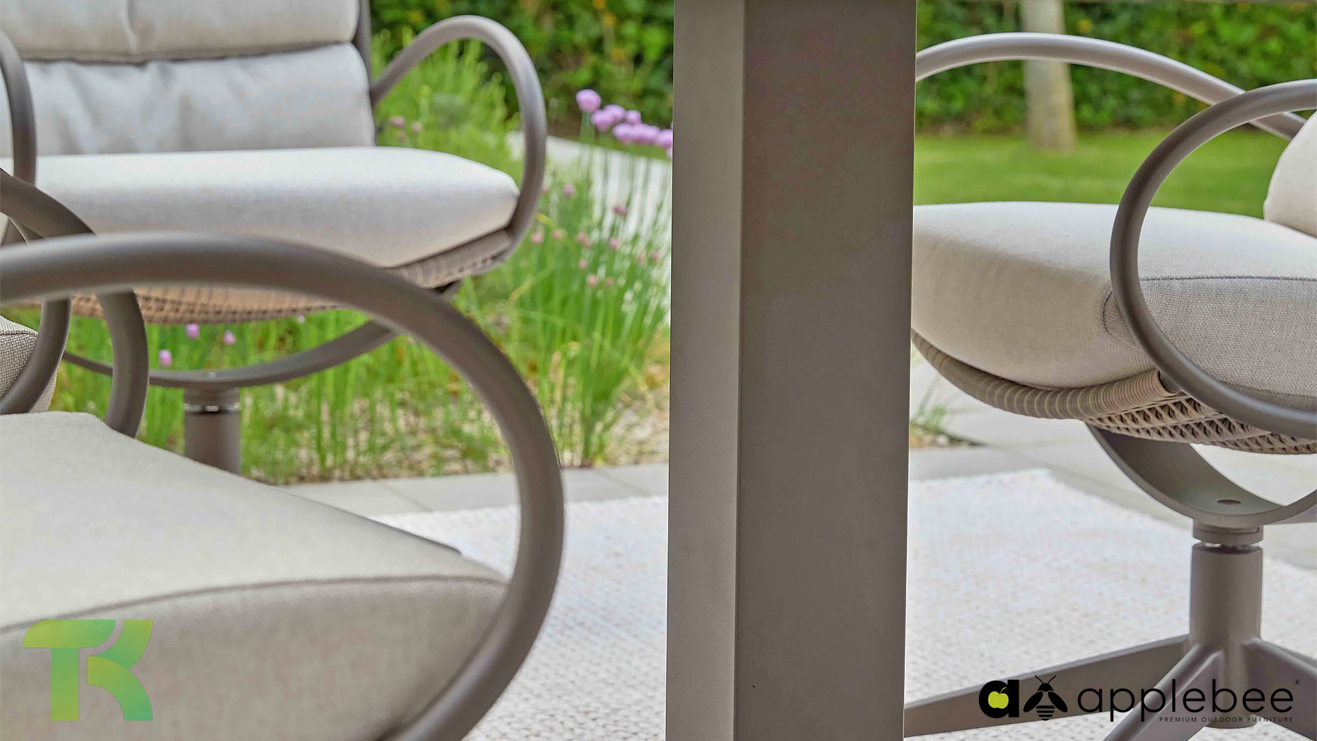 Wil je jouw terras omtoveren tot een chique buitenverblijf met een warme, moderne uitstraling? Maak kennis met de Camp Bay Bronze serie van het topmerk Apple Bee. Deze dining set combineert een krachtig, donker kleurenpalet met slimme functionaliteit, waardoor je geniet van ongekend comfort tijdens lange zomeravonden.