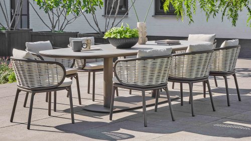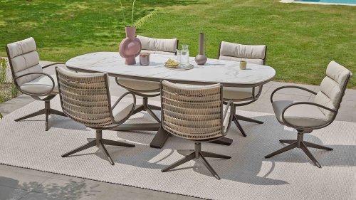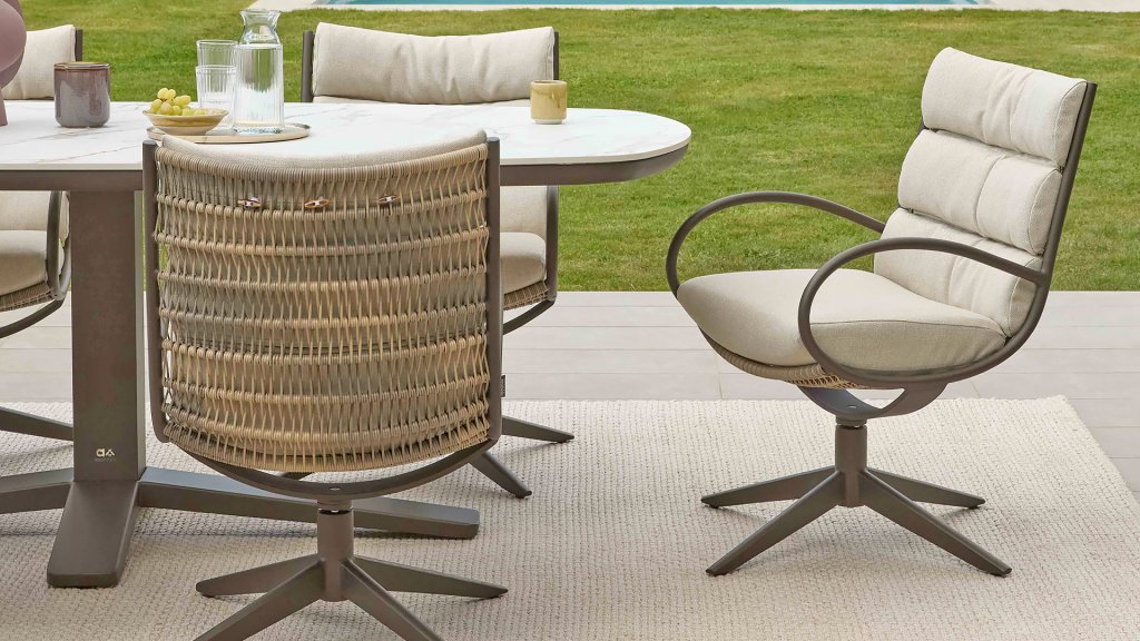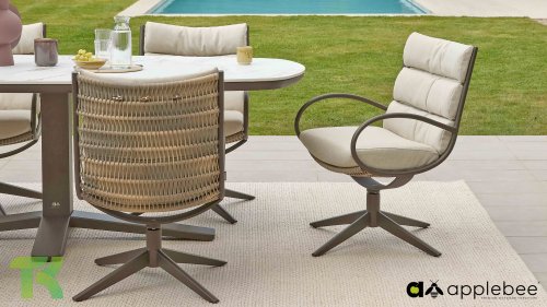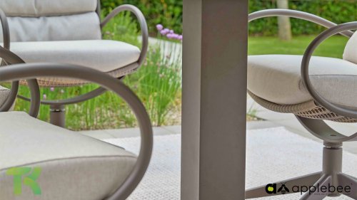 • Draaibaar Comfort: De eetstoelen zijn uitgevoerd als swivel chair. Dit betekent dat de kuip soepel kan ronddraaien, zodat je je makkelijk naar je gesprekspartner of de zon wendt zonder te schuiven.