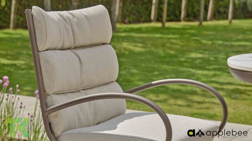 • Stijlvol Frame: De basis bestaat uit hoogwaardig, gepoedercoat aluminium in de robuuste kleur Bronze. Dit is niet alleen sterk en lichtgewicht, maar geeft de stoel ook een exclusief karakter.