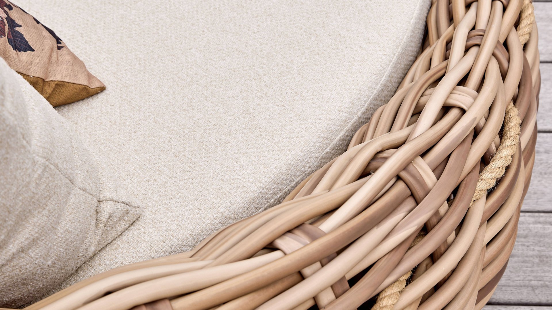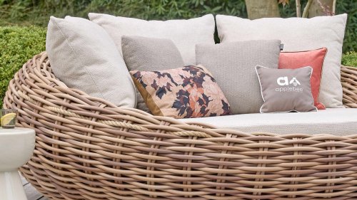 Geïnspireerd op de veilige, geborgen cocon, waarin een rups transformeert naar een prachtige vlinder. Fraaie Cream Bouclé loungekussens met Bee Wett® technologie in combinatie met het uitzonderlijk dik gevlochten Biculair® vlechtdraad van maar liefst 20 mm! Cocoon van Apple Bee is je eigen geborgen plekje in de tuin of op het terras!