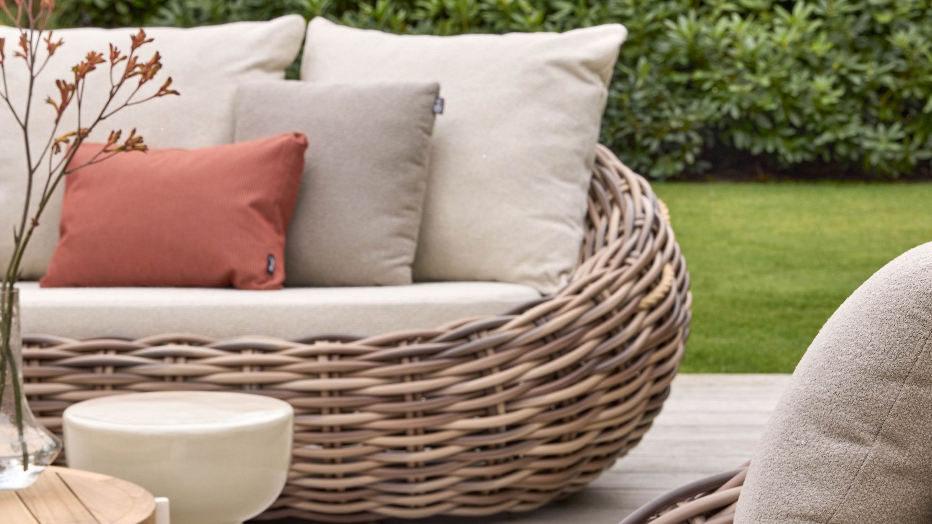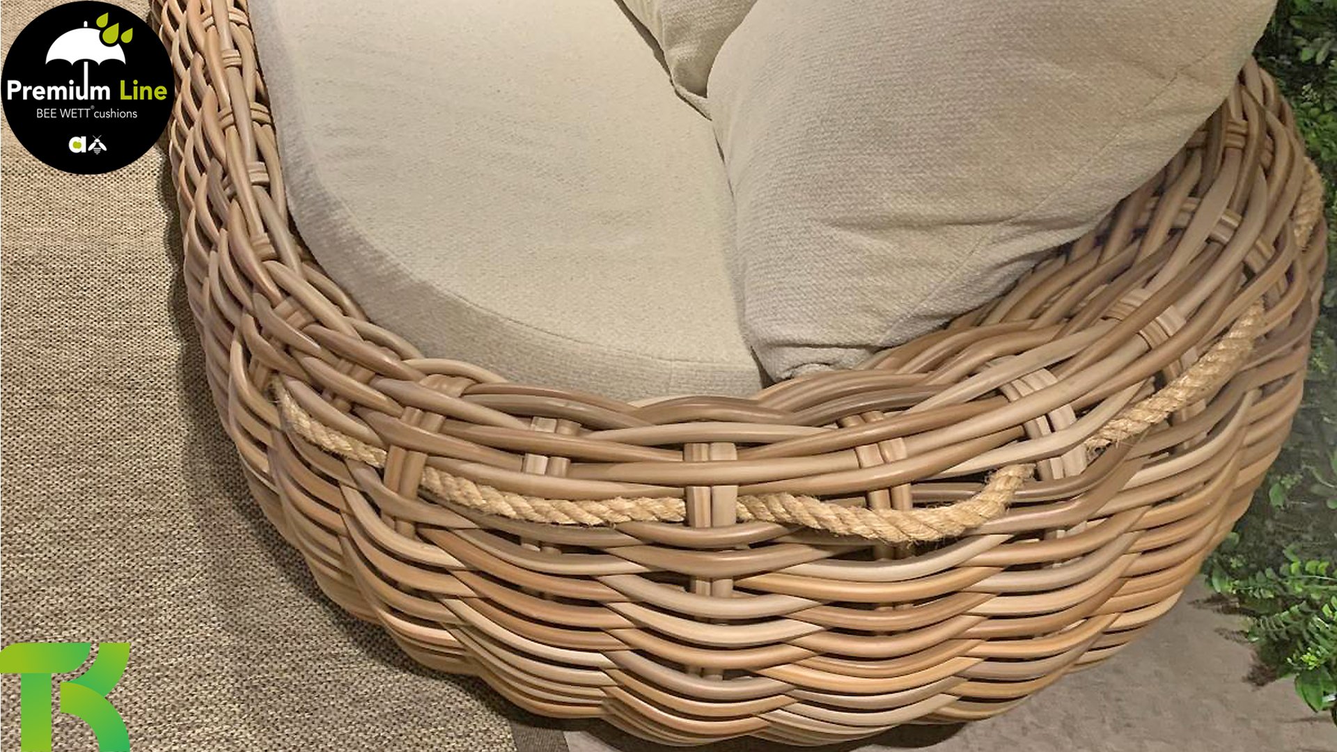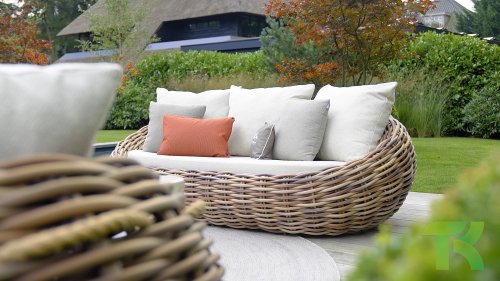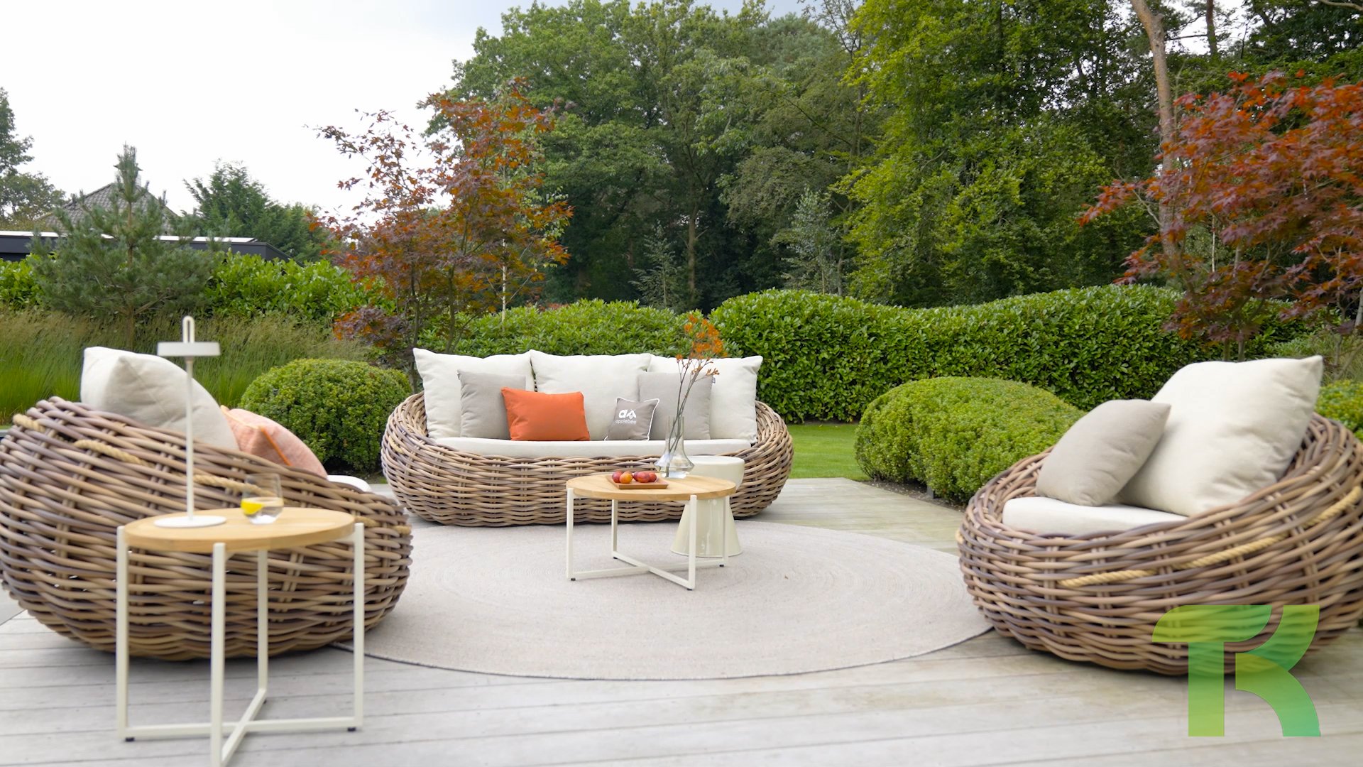 De Cocoon van Apple Bee is geïnspireerd op de veilige, geborgen cocon, waarin een rups transformeert naar een prachtige vlinder. Fraaie loungekussens in Cream Bouclé met Bee Wett® technologie in combinatie met het uitzonderlijk dik gevlochten Biculair® vlechtdraad van maar liefst 20 mm!