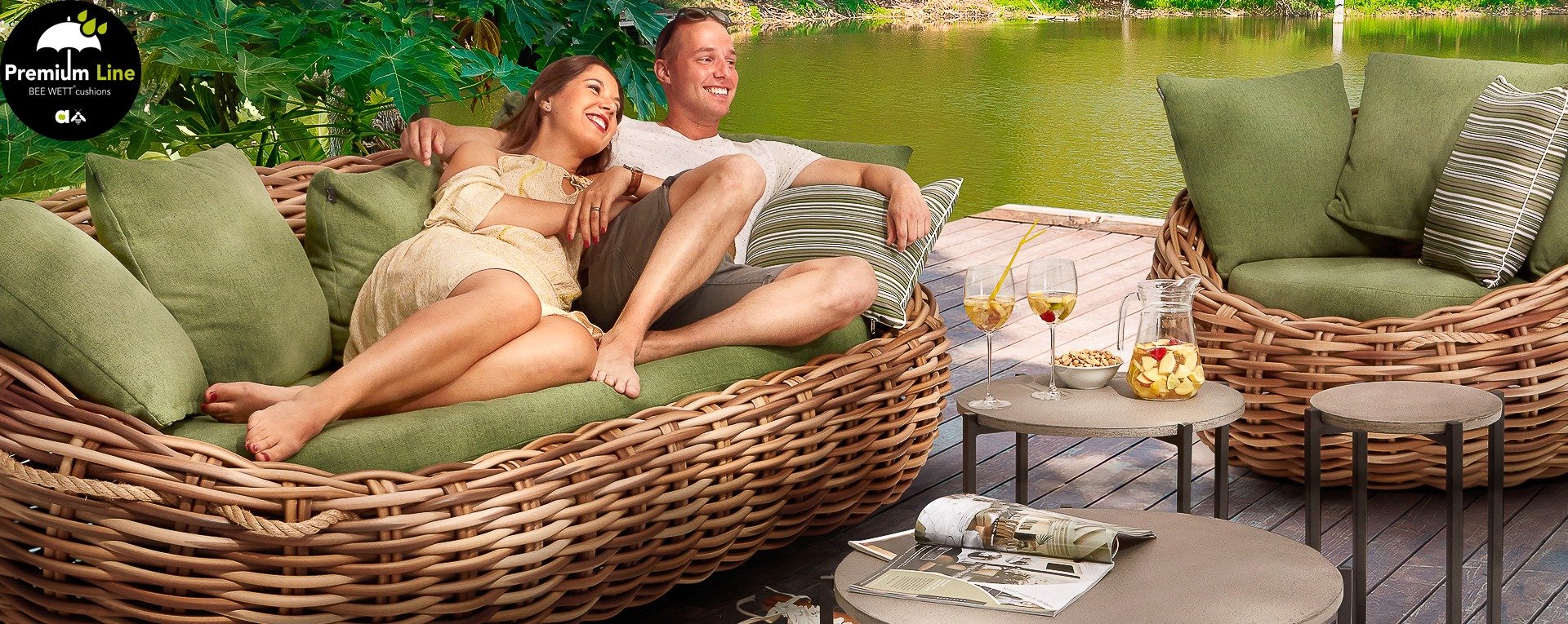 Natuurlijk met de bekende Beewett kussens van Apple Bee voor heerlijk gebruiksgemak! Apple Bee meubelen worden opgebouwd uit de beste materialen. Dit geldt zeker voor de kussens. Bee Wett zijn speciale weerbestendige kussens die je gewoon buiten kunt laten liggen. De afneembare hoes wordt gemaakt van de best mogelijke stoffen die alle wasbaar zijn. Naast waterafstotend is de stof ook gegarandeerd UV-bestendig. Anders dan bij gewoon schuim neemt de unieke Bee Wett vulling geen vocht op. Het open weefsel aan de onderzijde van het kussen zorgt voor een perfecte drainage. Dit zorgt ervoor dat uw Bee wett kussen spectaculair veel sneller droogt dan andere kussens. Daarnaast is de Olefin stof bestand tegen rot en schimmels, UV-bestendig, vochtwerend, zacht en comfortabel.