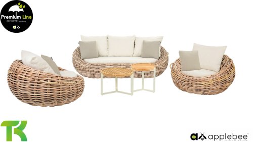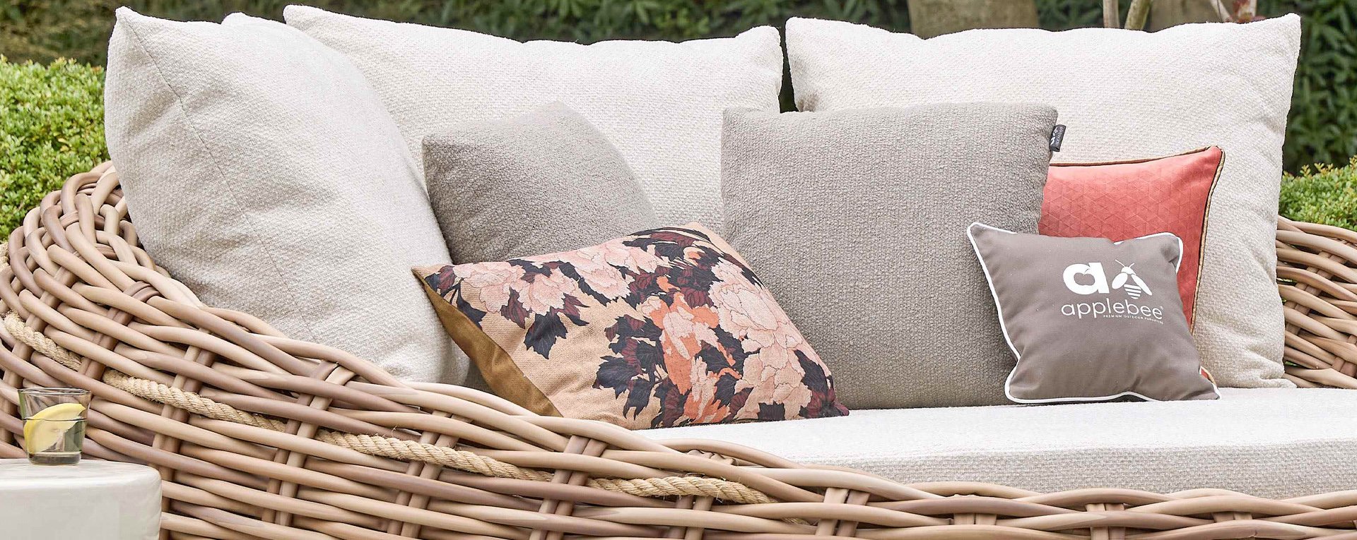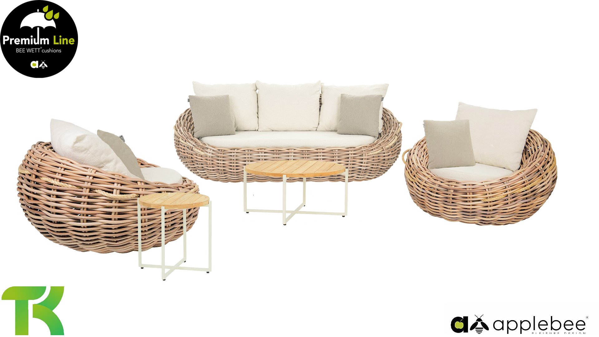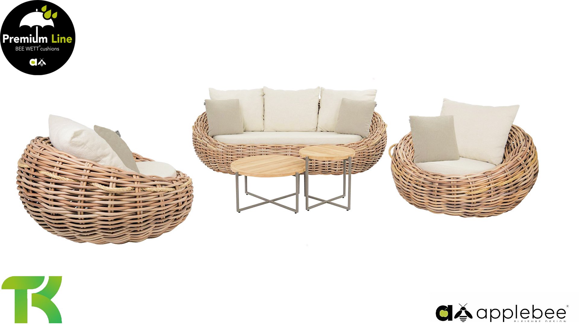 Natuurlijk met de bekende Beewett kussens van Apple Bee voor heerlijk gebruiksgemak! Apple Bee meubelen worden opgebouwd uit de beste materialen. Dit geldt zeker voor de kussens. Bee Wett zijn speciale weerbestendige kussens die je gewoon buiten kunt laten liggen. De afneembare hoes wordt gemaakt van de best mogelijke stoffen die alle wasbaar zijn. Naast waterafstotend is de stof ook gegarandeerd UV-bestendig. Anders dan bij gewoon schuim neemt de unieke Bee Wett vulling geen vocht op. Het open weefsel aan de onderzijde van het kussen zorgt voor een perfecte drainage. Dit zorgt ervoor dat uw Bee wett kussen spectaculair veel sneller droogt dan andere kussens. Daarnaast is de Olefin stof bestand tegen rot en schimmels, UV-bestendig, vochtwerend, zacht en comfortabel.