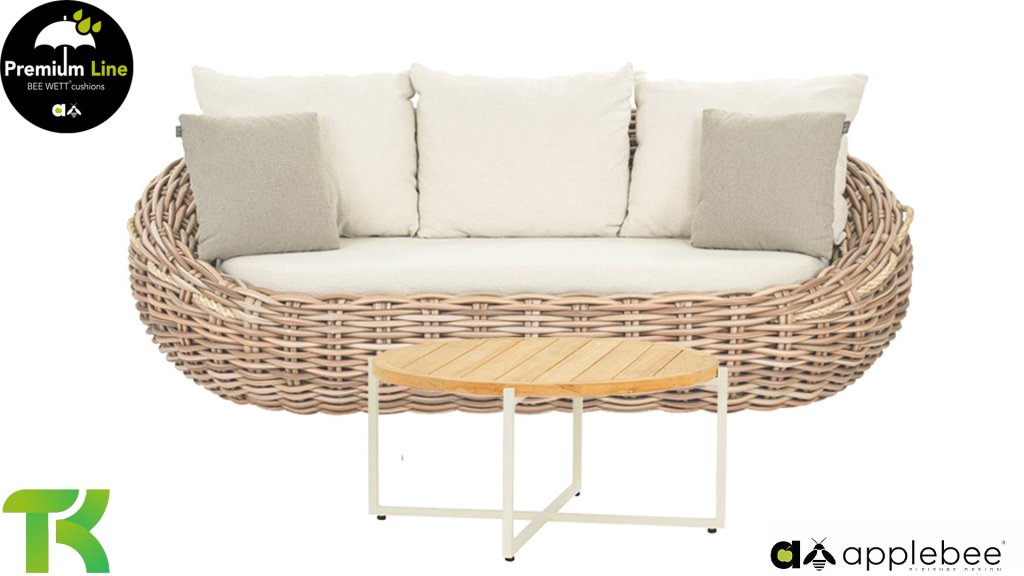 Kenmerkend voor Apple Bee is het gebruik van speciaal Biculair® vlechtwerk, oorspronkelijk ontwikkeld voor professionele toepassingen in de horeca. Dit Biculair® vlechtwerk is een natuurgetrouw, duurzaam alternatief voor rotan. Deze zeer duurzame synthetische rotanvezel (HDPE) is volledig weerbestendig, kleurecht, recyclebaar en dus een milieuvriendelijke keuze. Het uiterlijk en de prestaties van het meubilair blijven dus onaangetast door de Europese weersomstandigheden en de kleuren behouden hun natuurlijke levendigheid. De superieure kwaliteit van dit vlechtwerk, gecontroleerd door de Nederlandse Organisatie voor Toegepast Natuurwetenschappelijk Onderzoek (TNO), is duidelijk in vergelijking met andere vergelijkbare materialen.