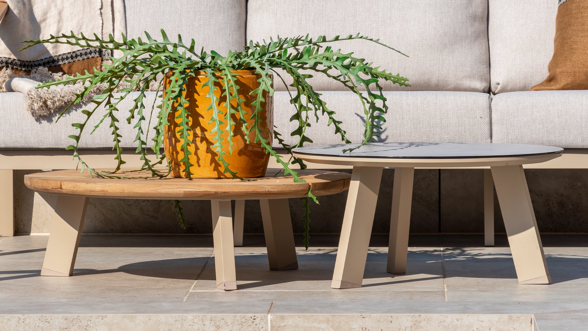 It takes 2 to tango Waarom zou je voor 1 salontafel kiezen als je er ook 2 kan krijgen? Bij de Taste 4Seasons Emma salontafelset geven we je daarom altijd een tafel met teak blad én een met keramisch Glass blad. Kies de kleur die je loungeset matcht: latte of antraciet.