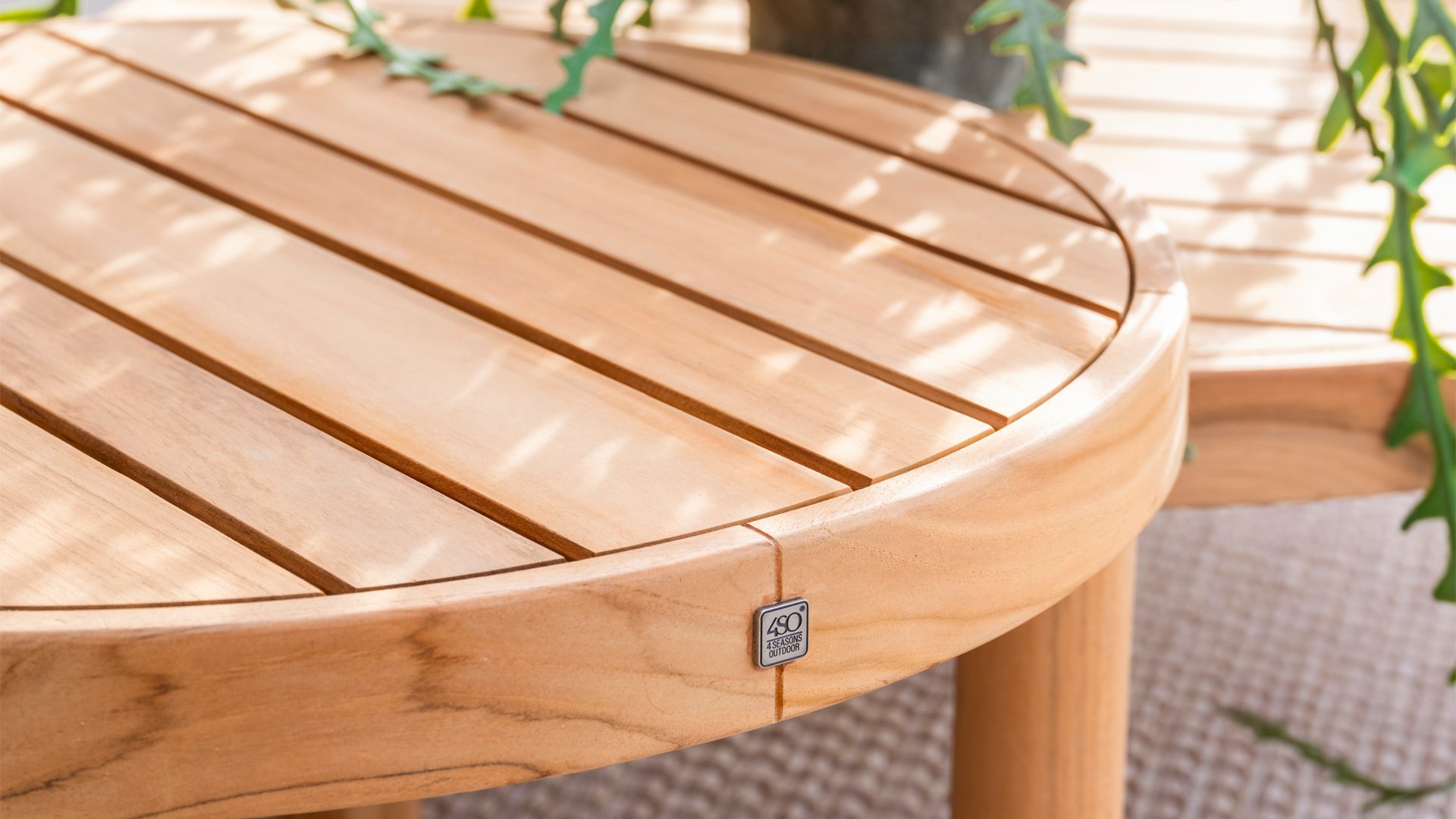 De 4 Seasons Outdoor Finn salontafel serie van teakhout voegt een vleugje klasse en functionaliteit toe aan je buitenruimte. Deze salontafels zijn toe te voegen aan een groot deel van onze loungesets. Teak hout laat zich namelijk perfect combineren met vele materialen en kleuren. Maak een set van deze 4SO Finn salontafel, kies voor een combinatie van de grote en/of kleine ronde variant of de rechthoek zodat u een unieke aanvulling hebt bij uw loungeset.