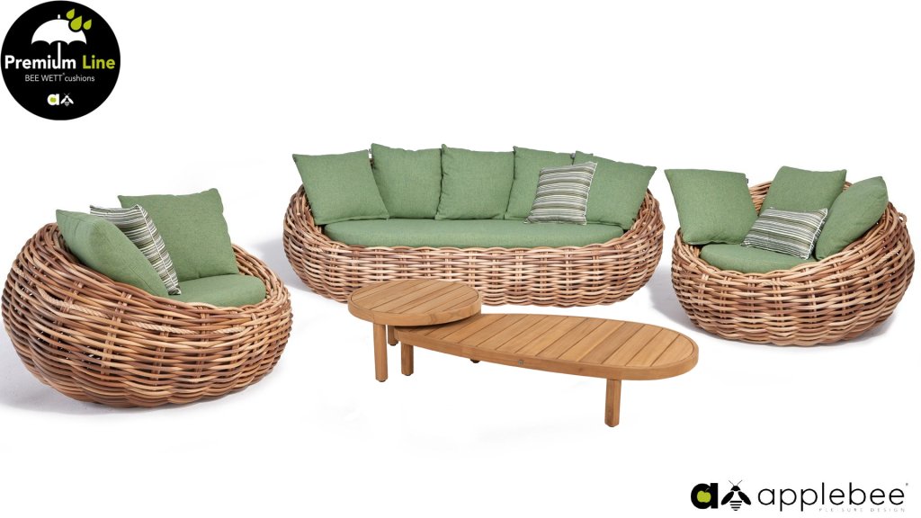 De Cocoon van Applebee is geïnspireerd op de veilige, geborgen cocon, waarin een rups transformeert naar een prachtige vlinder. Fraaie groene loungekussens -naar keuze met Bee Wett® technologie- in combinatie met het uitzonderlijk dik gevlochten Biculair® vlechtdraad van maar liefst 20 mm!