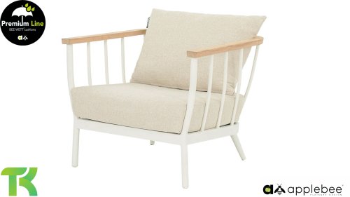 De Apple Bee Condor Lounge Oyster heeft een strakke, stoere look. Het basismateriaal is Oyster gekleurd gepoedercoat aluminium. De BEE WETT® kussens hebben een grove weefstructuur, maar met een soft touch. De mooie rondingen in de rug en het gebruik van naturel teakhout in de leuningen geven de Condor een aangenaam vleugje natuurlijke warmte mee.