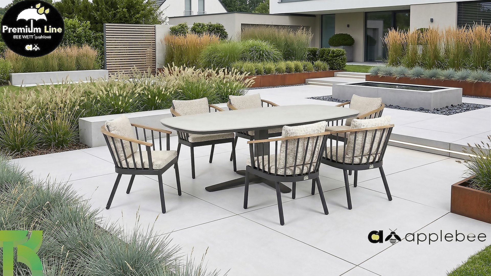 De mogelijkheden in de Apple Bee Condor serie: Condor Oyster tuinset, Condor Oyster loungeset, Condor Black tuinset en de Condor Black loungeset.
