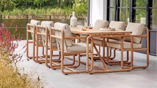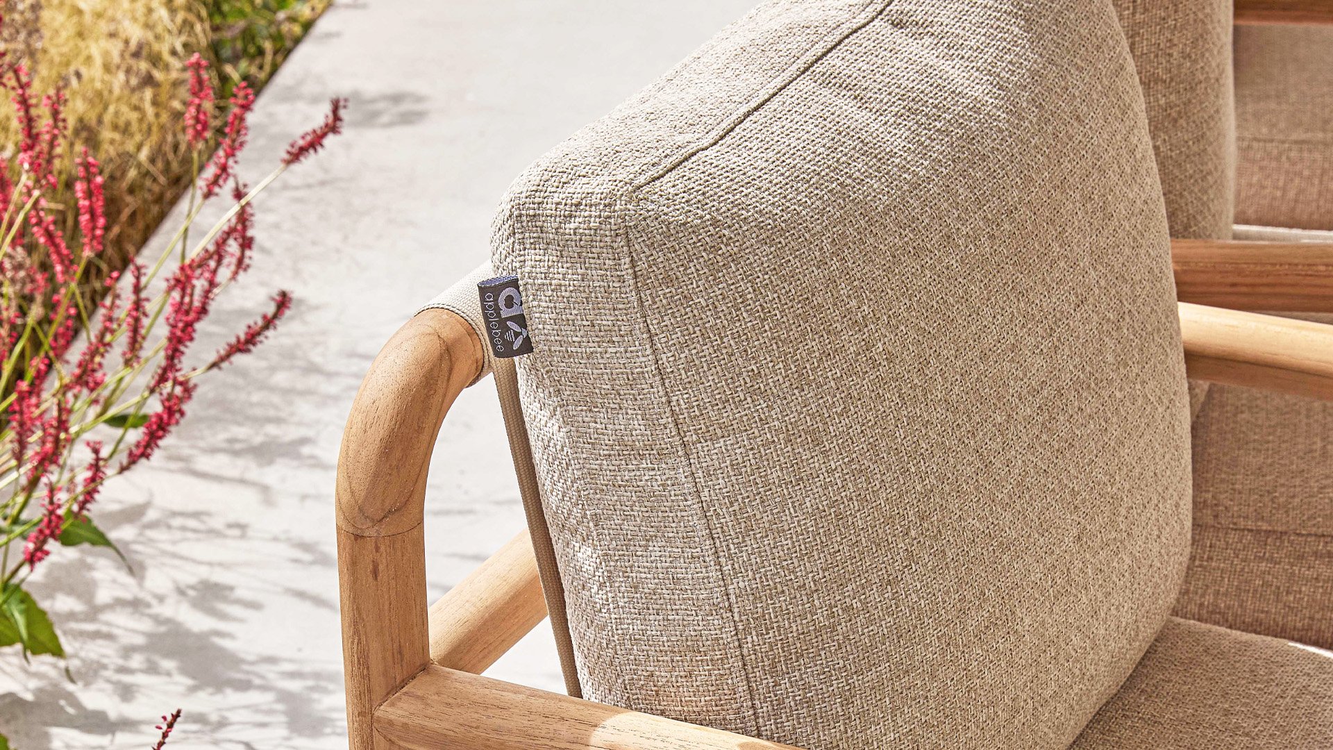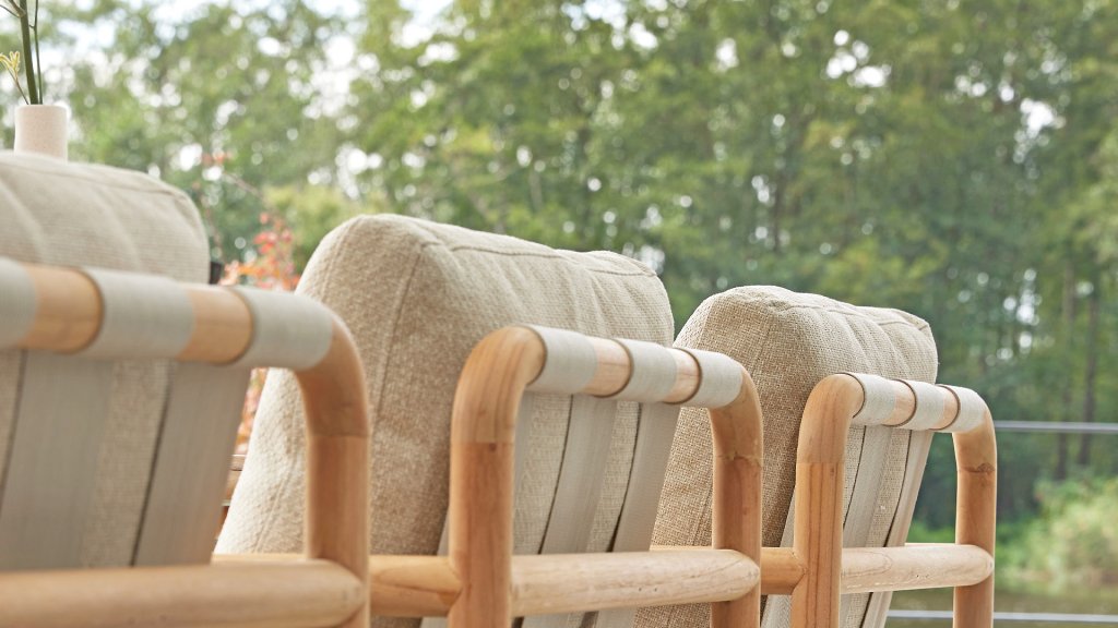 De Dolce Cotton Flower Lounge- en Dining serie met minimalistische maar landelijk vormgegeven en sierlijke ronde vormen. De ronde vormen houden dit design helemaal in balans. Het zit- en ruggedeelte is gemaakt van Belt vlechtwerk voor een fijne ondersteuning en een speelse look. Door de veerkracht van het Belt vlechtwerk en de dikke kussens ontstaat een subliem zit-comfort! De kussens zijn uitgevoerd in de nieuwe kleur Cotton Flower en bevatten de welbekende Bee Wett® technologie. Deze stof is zeer weerbestendig en duurzaam.