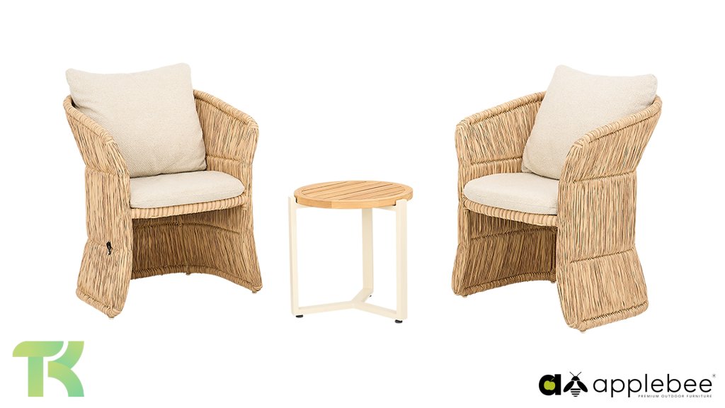 Kenmerkend voor Apple Bee is het gebruik van speciaal Biculair® vlechtwerk, oorspronkelijk ontwikkeld voor professionele toepassingen in de horeca. Dit Biculair® vlechtwerk is een natuurgetrouw, duurzaam alternatief voor rotan. Deze zeer duurzame synthetische rotanvezel (HDPE) is volledig weerbestendig, kleurecht, recyclebaar en dus een milieuvriendelijke keuze. Het uiterlijk en de prestaties van het meubilair blijven dus onaangetast door de Europese weersomstandigheden en de kleuren behouden hun natuurlijke levendigheid. De superieure kwaliteit van dit vlechtwerk, gecontroleerd door de Nederlandse Organisatie voor Toegepast Natuurwetenschappelijk Onderzoek (TNO), is duidelijk in vergelijking met andere vergelijkbare materialen.