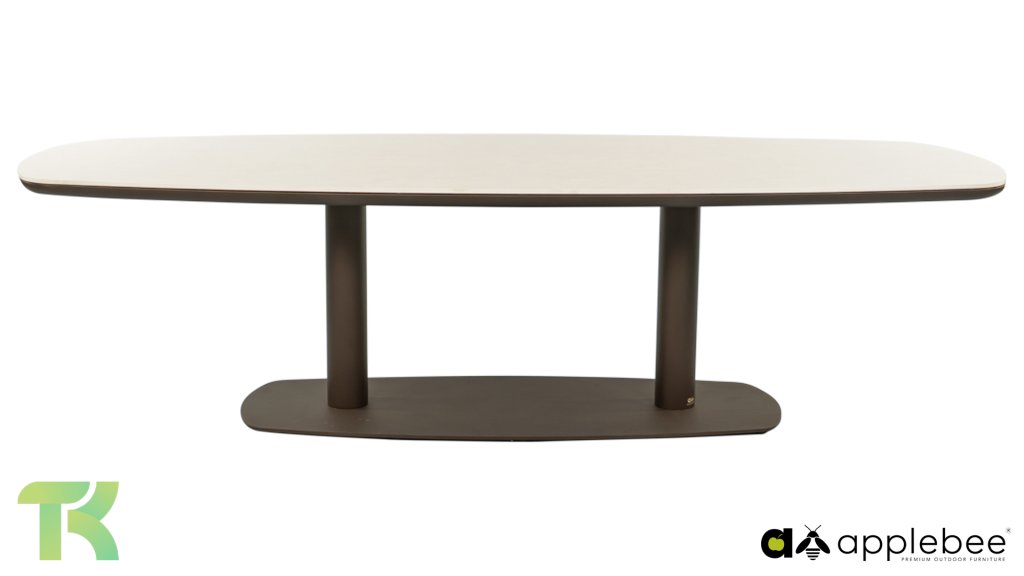 De Melville eettafel van Apple Bee is het ultieme meesterwerk voor de tuin of het terras. De ware blikvanger is het blad, vervaardigd uit hypermoderne Sintered Stone. Dit innovatieve materiaal is niet alleen prachtig om te zien, maar biedt ook ultieme functionaliteit: het is uitzonderlijk kras-, vlek- en hittebestendig, ideaal voor intensief gebruik en zorgeloos buitenleven. Dit premium design is gebouwd op een slank, maar uiterst stabiel onderstel van gepoedercoat aluminium.
