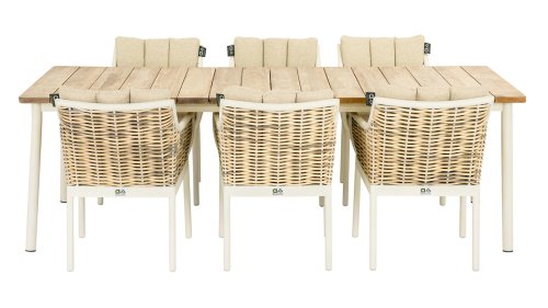 De Applebee Milou tafel bestaat uit gecertificeerd teakhout met een gepoedercoat aluminium frame. De tafel is dus zeer geschikt voor het buitenleven. De kleur Oyster brengt toch nog een iets warmere tint met zich mee, tezamen met een naturel teakhouten blad brengt deze tafel de tuin naar een ander niveau.