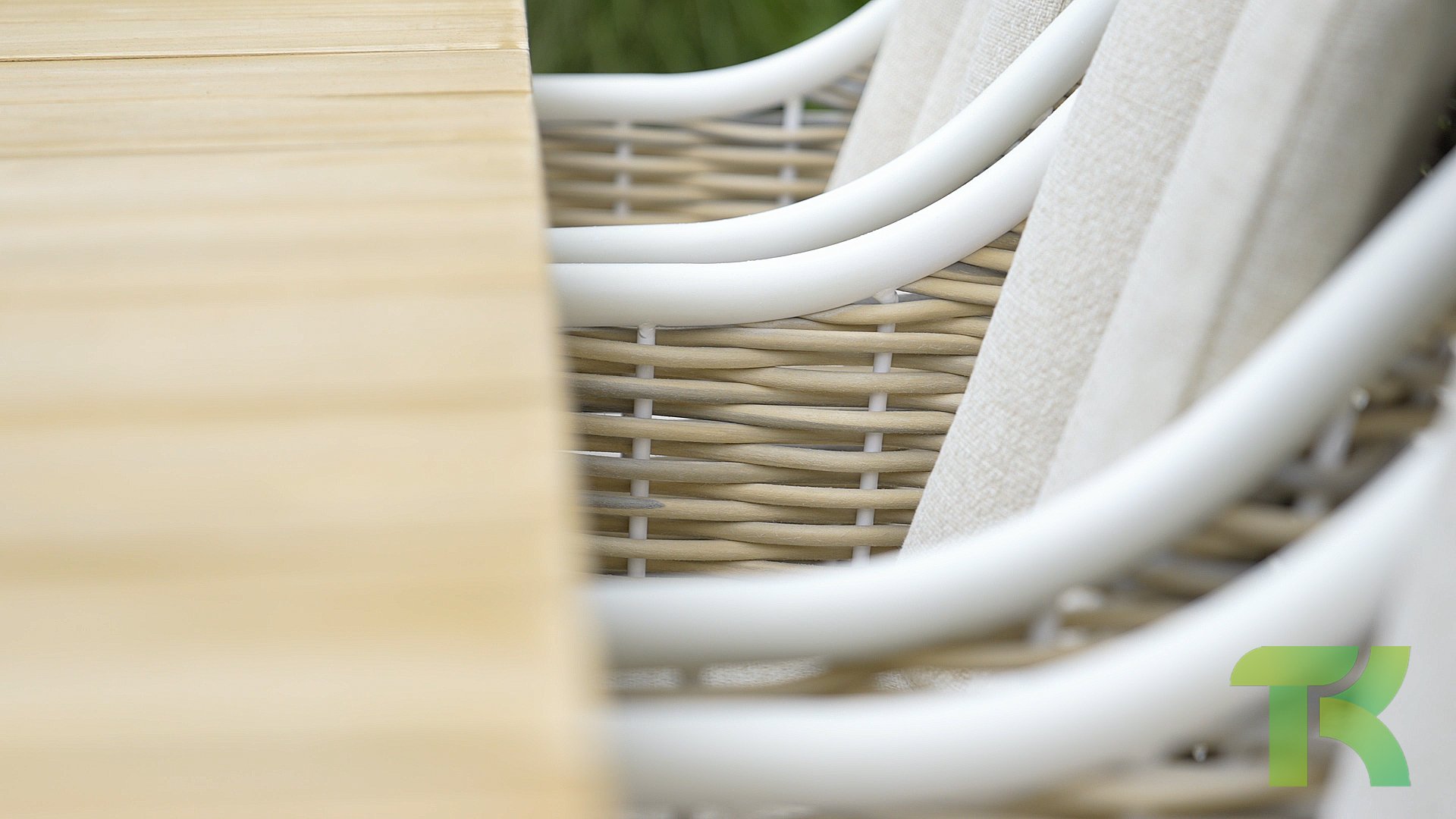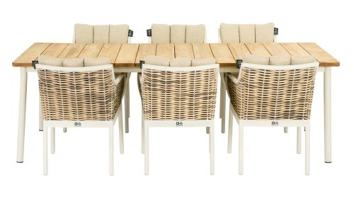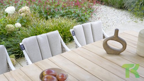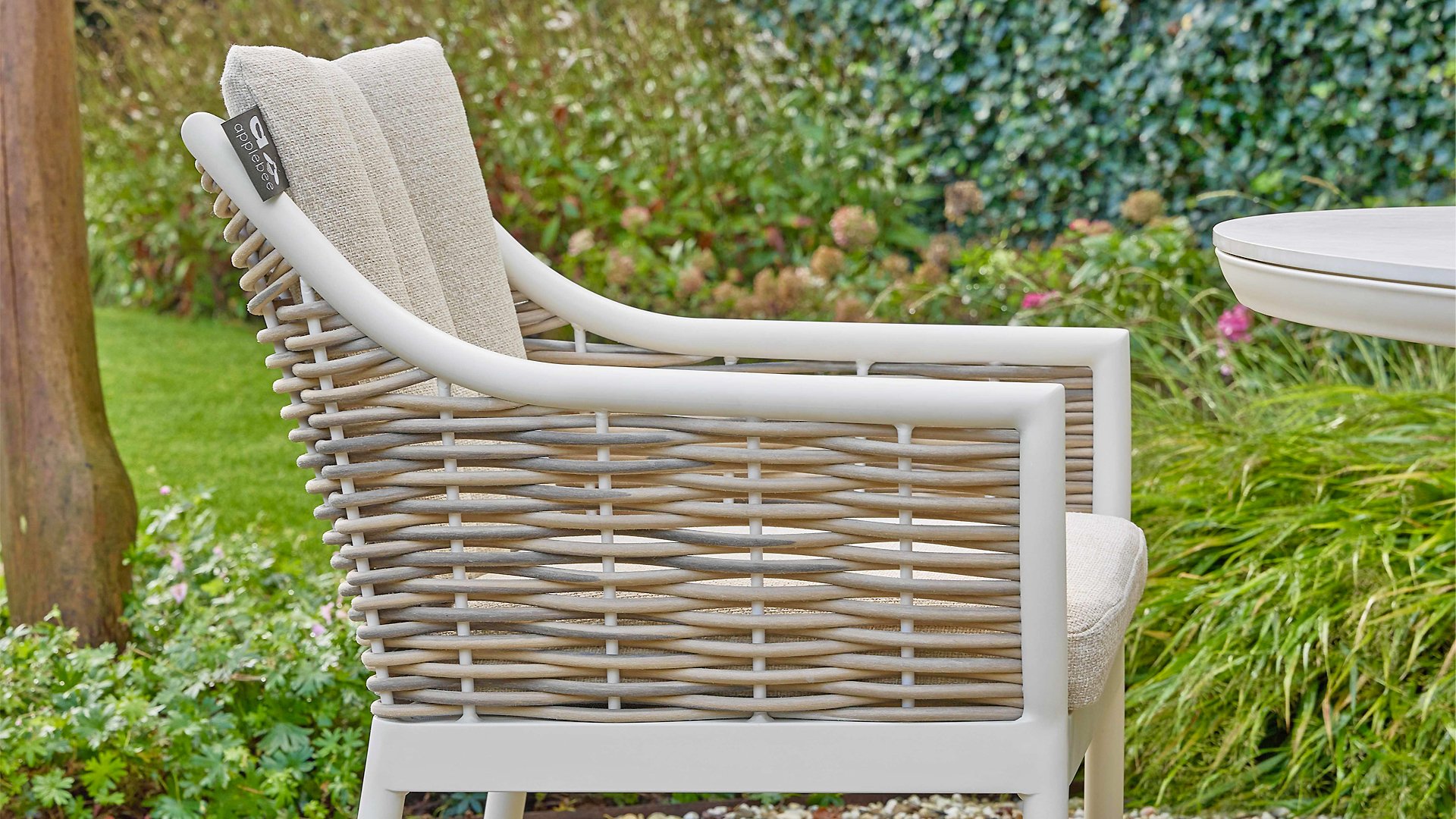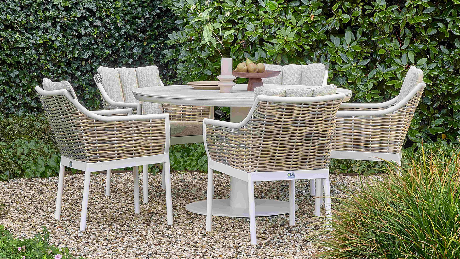 De meisjesnaam Milou betekent zacht en vriendelijk. Het vlechtdraad van de Apple Bee Milou Oyster Dining heeft de uitstraling van wilgenteen. Natuurgetrouw om te zien, maar in de bekende stevige Biculair® buitenkwaliteit die u van Apple Bee gewend bent. Dit vlechtwerk wordt omlijst door een oyster gepoedercoat frame met gebogen lijnen, waaraan tuinset Milou haar chique, moderne look ontleent.