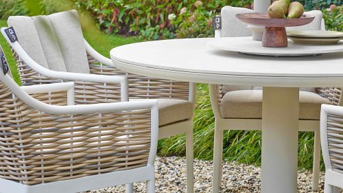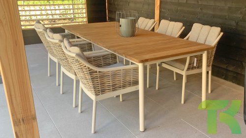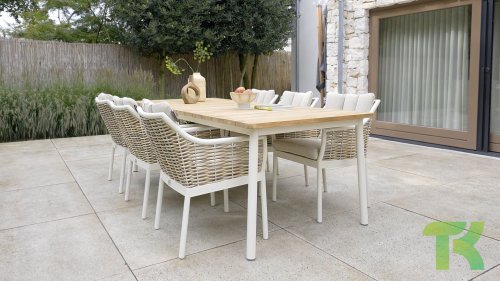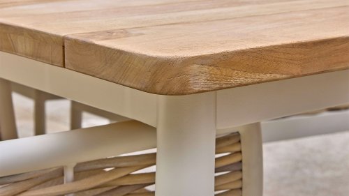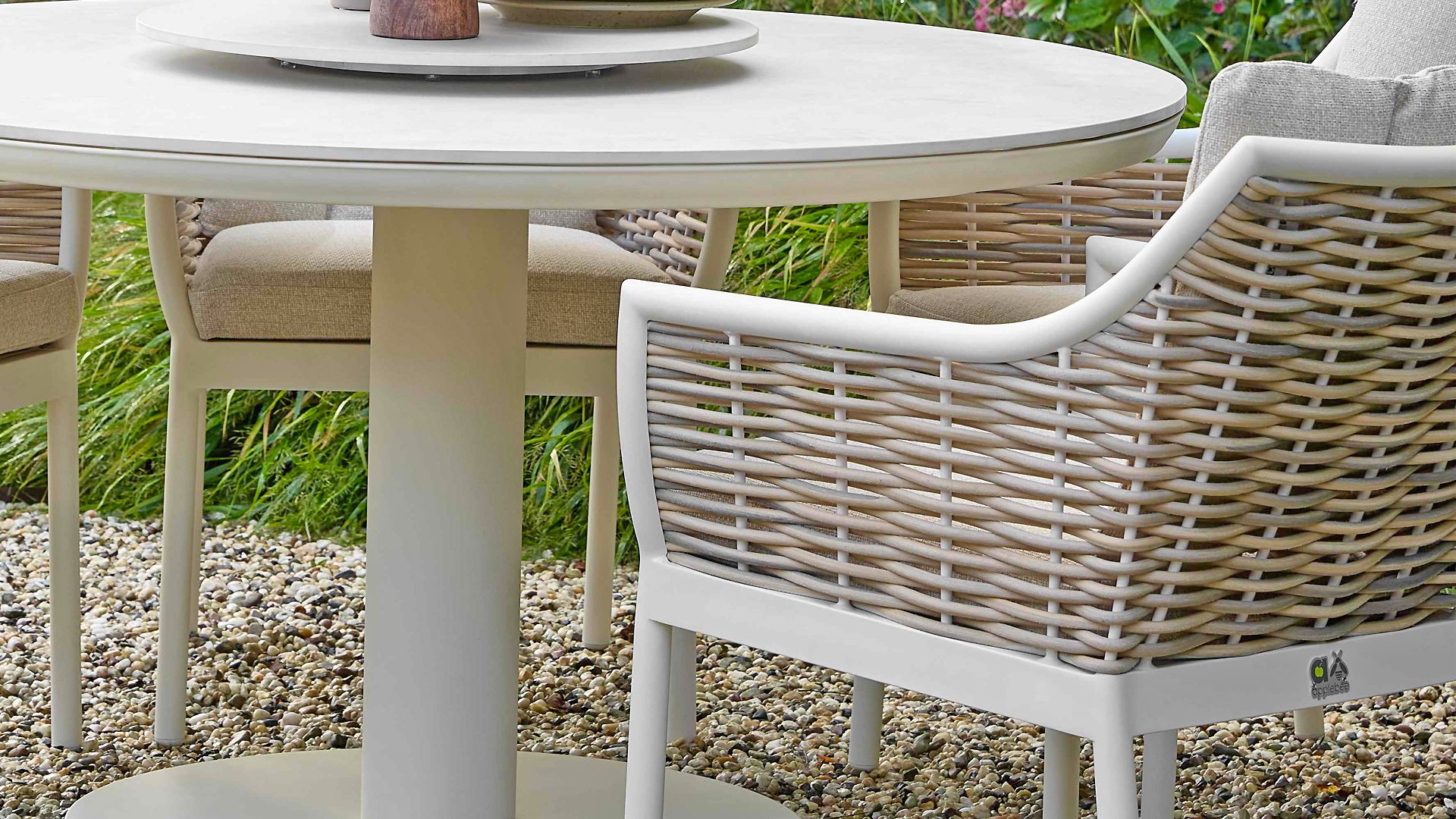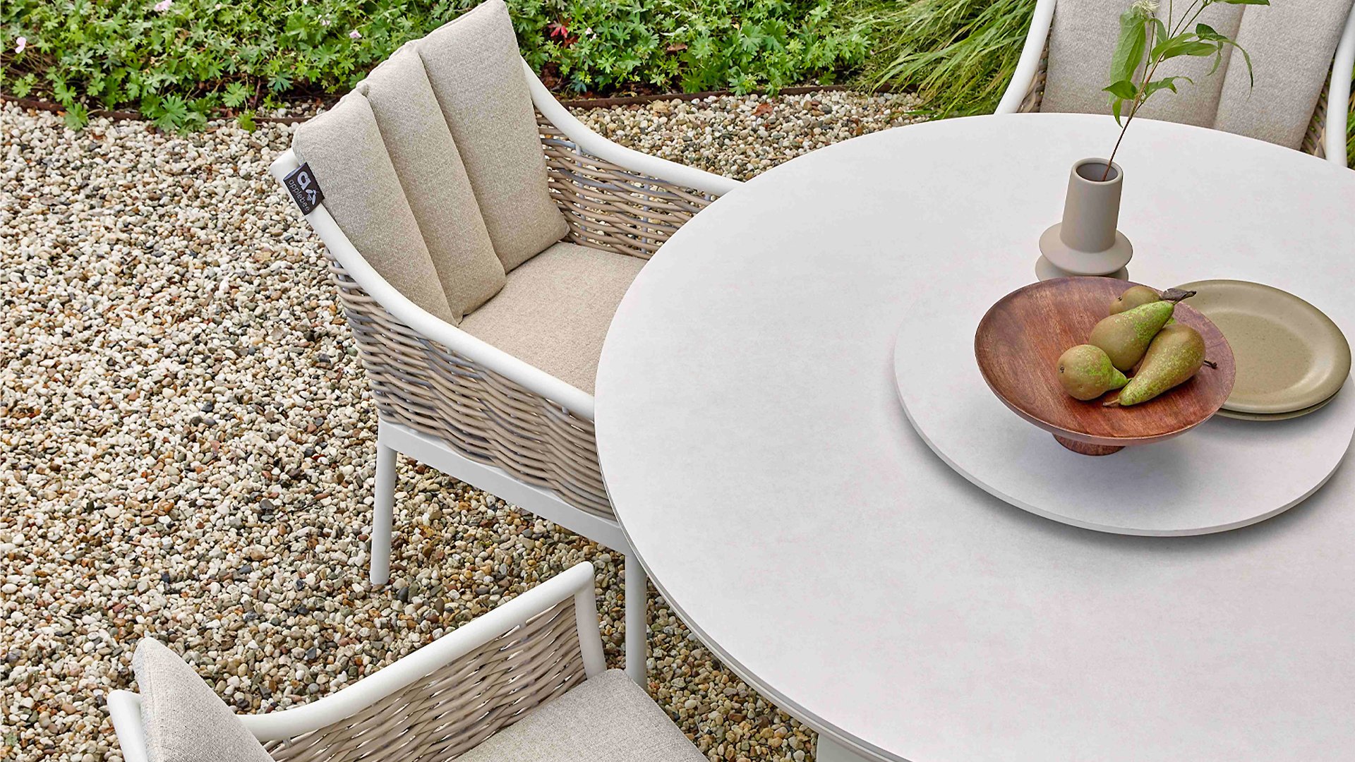 De meisjesnaam Milou betekent zacht en vriendelijk. Het vlechtdraad van de Apple Bee Milou Oyster Dining heeft de uitstraling van wilgenteen. Natuurgetrouw om te zien, maar in de bekende stevige Biculair® buitenkwaliteit die u van Apple Bee gewend bent. Dit vlechtwerk wordt omlijst door een oyster gepoedercoat frame met gebogen lijnen, waaraan tuinset Milou haar chique, moderne look ontleent.
