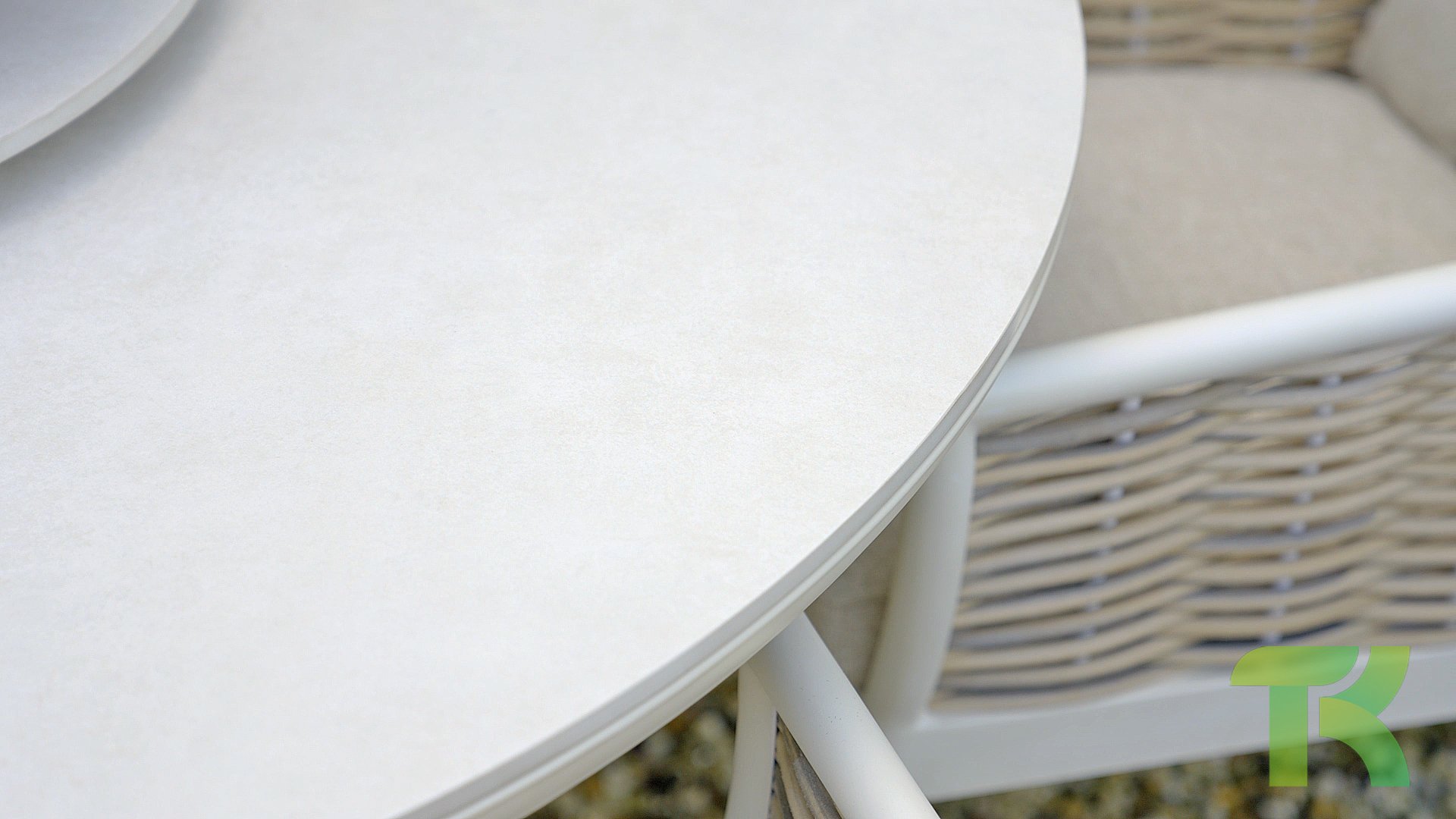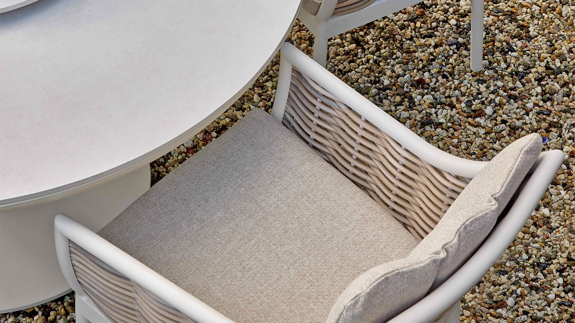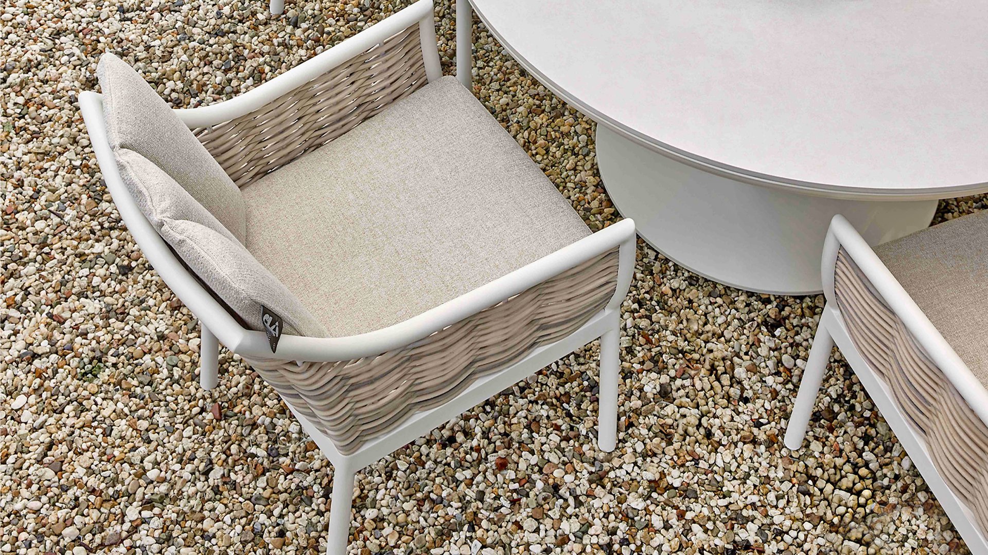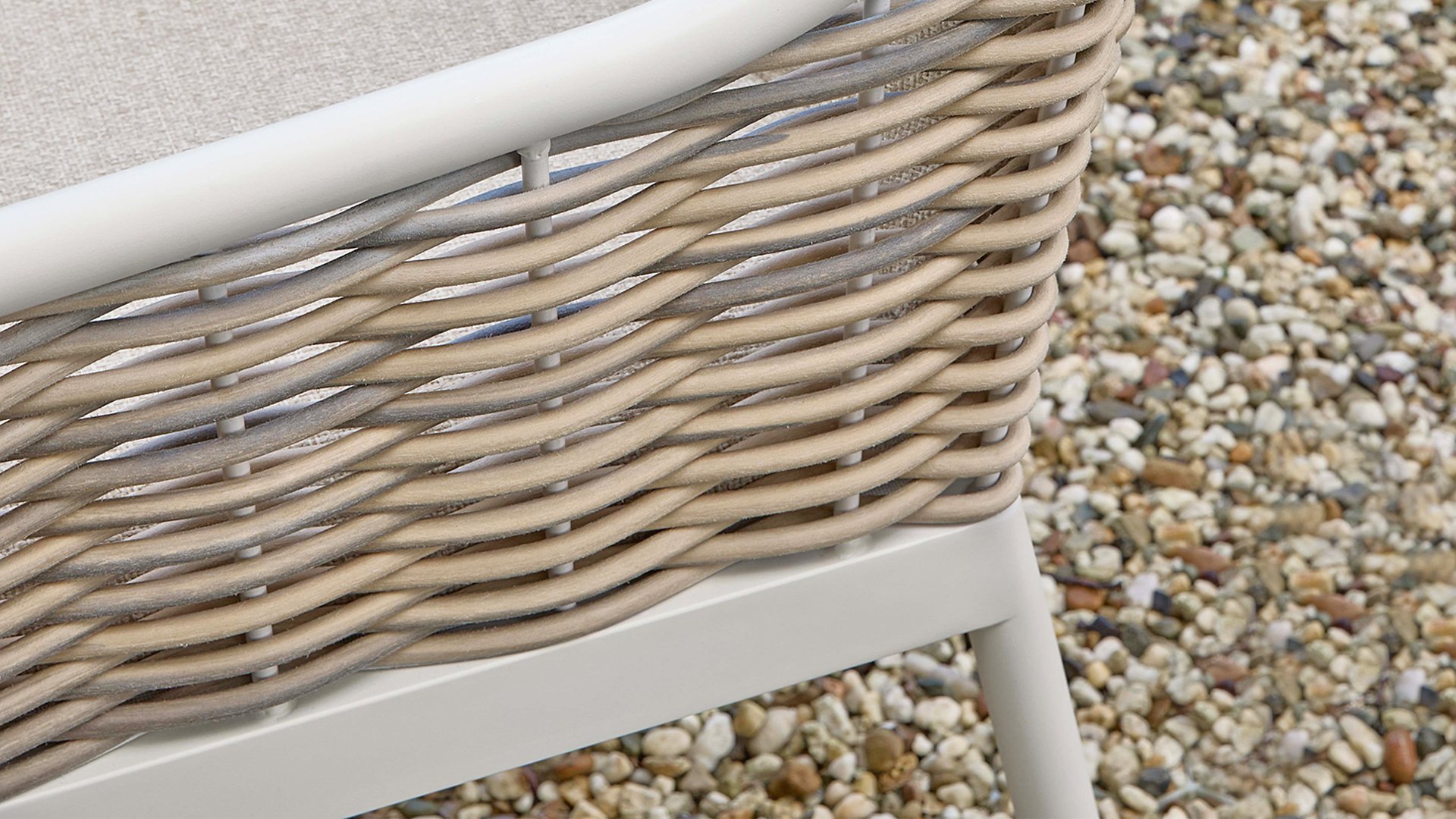 Kenmerkend voor Apple Bee is het gebruik van speciaal Biculair® vlechtwerk, oorspronkelijk ontwikkeld voor professionele toepassingen in de horeca. Dit Biculair® vlechtwerk is een natuurgetrouw, duurzaam alternatief voor rotan. Deze zeer duurzame synthetische rotanvezel (HDPE) is volledig weerbestendig, kleurecht, recyclebaar en dus een milieuvriendelijke keuze. Het uiterlijk en de prestaties van het meubilair blijven dus onaangetast door de Europese weersomstandigheden en de kleuren behouden hun natuurlijke levendigheid. De superieure kwaliteit van dit vlechtwerk, gecontroleerd door de Nederlandse Organisatie voor Toegepast Natuurwetenschappelijk Onderzoek (TNO), is duidelijk in vergelijking met andere vergelijkbare materialen.