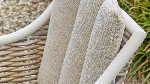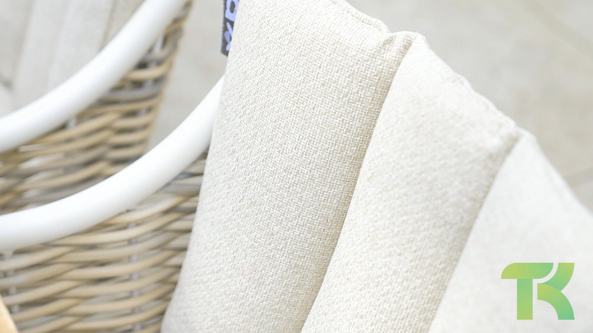 De kleur 'Oyster' is een zachte, neutrale tint die vaak wordt omschreven als gebroken wit die toch de natuurlijke tinten van het kussen en vlechtwerk complimenteert. Het heeft een subtiele, rustige uitstraling en doet denken aan de kleur van een oesterschelp, wat de naam verklaart. Oyster heeft een verfijnde en elegante kwaliteit, vaak gebruikt in interieurdesign voor een kalme en natuurlijke sfeer. Het is een veelzijdige kleur die goed combineert met andere neutrale tinten, maar ook met levendigere kleuren voor een subtiel contrast.