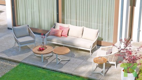 1 x Apple Bee Monaco salontafel teak-aluminium oyster