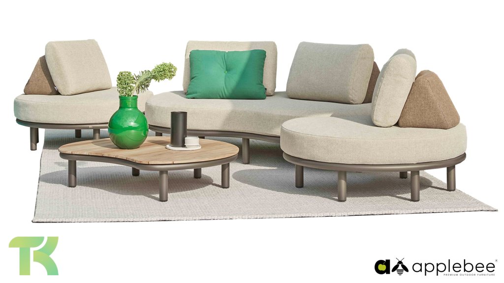 Het slanke frame is vervaardigd uit hoogwaardig gepoedercoat aluminium in de warme, chique kleur Bronze. Een kleur die perfect harmonieert met de natuurlijke tinten van je tuin. De kussens zijn uitgevoerd in de kleur Cotton Flower. Een zachte, natuurlijke tint die rust uitstraalt en uitstekend combineert met de bronze en bruine accenten. Daarbij is de stoffering van olefin met de welkbekende BeeWett technologie van Apple Bee. Dit maakt ze niet alleen extreem zacht en kleurvast, maar ook weerbestendig. Na een regenbui zijn de kussens dankzij de unieke drainage-structuur in een mum van tijd weer droog. Beleef het comfort van de toekomst en geef je tuin de upgrade die het verdient.