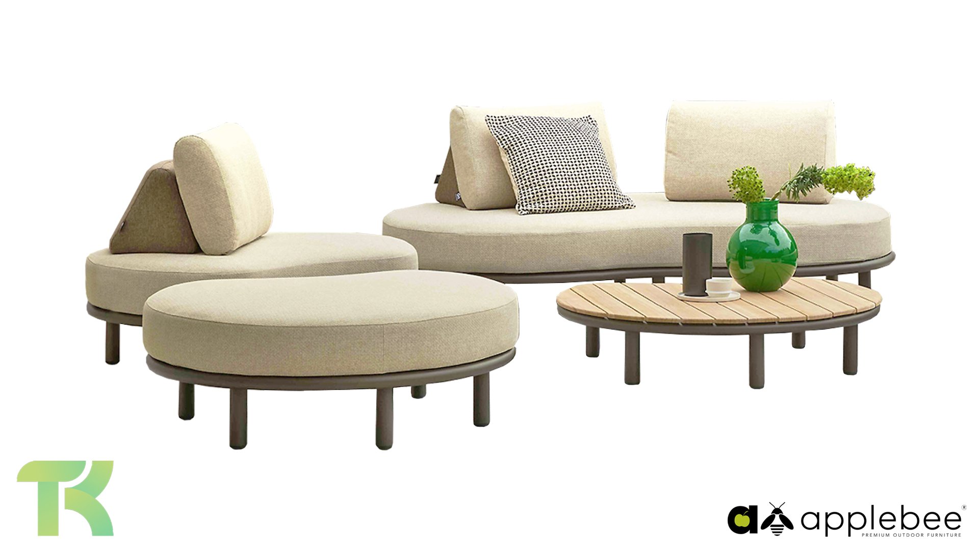 Het slanke frame is vervaardigd uit hoogwaardig gepoedercoat aluminium in de warme, chique kleur Bronze. Een kleur die perfect harmonieert met de natuurlijke tinten van je tuin. De kussens zijn uitgevoerd in de kleur Cotton Flower. Een zachte, natuurlijke tint die rust uitstraalt en uitstekend combineert met de bronze en bruine accenten. Daarbij is de stoffering van olefin met de welkbekende BeeWett technologie van Apple Bee. Dit maakt ze niet alleen extreem zacht en kleurvast, maar ook weerbestendig. Na een regenbui zijn de kussens dankzij de unieke drainage-structuur in een mum van tijd weer droog. Beleef het comfort van de toekomst en geef je tuin de upgrade die het verdient.
