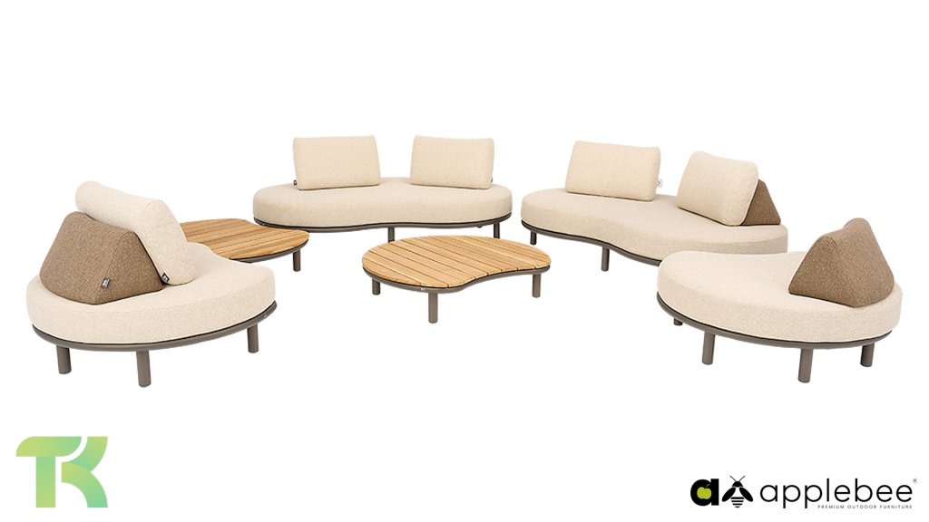 Het slanke frame is vervaardigd uit hoogwaardig gepoedercoat aluminium in de warme, chique kleur Bronze. Een kleur die perfect harmonieert met de natuurlijke tinten van je tuin. De kussens zijn uitgevoerd in de kleur Cotton Flower. Een zachte, natuurlijke tint die rust uitstraalt en uitstekend combineert met de bronze en bruine accenten. Daarbij is de stoffering van olefin met de welkbekende BeeWett technologie van Apple Bee. Dit maakt ze niet alleen extreem zacht en kleurvast, maar ook weerbestendig. Na een regenbui zijn de kussens dankzij de unieke drainage-structuur in een mum van tijd weer droog. Beleef het comfort van de toekomst en geef je tuin de upgrade die het verdient.