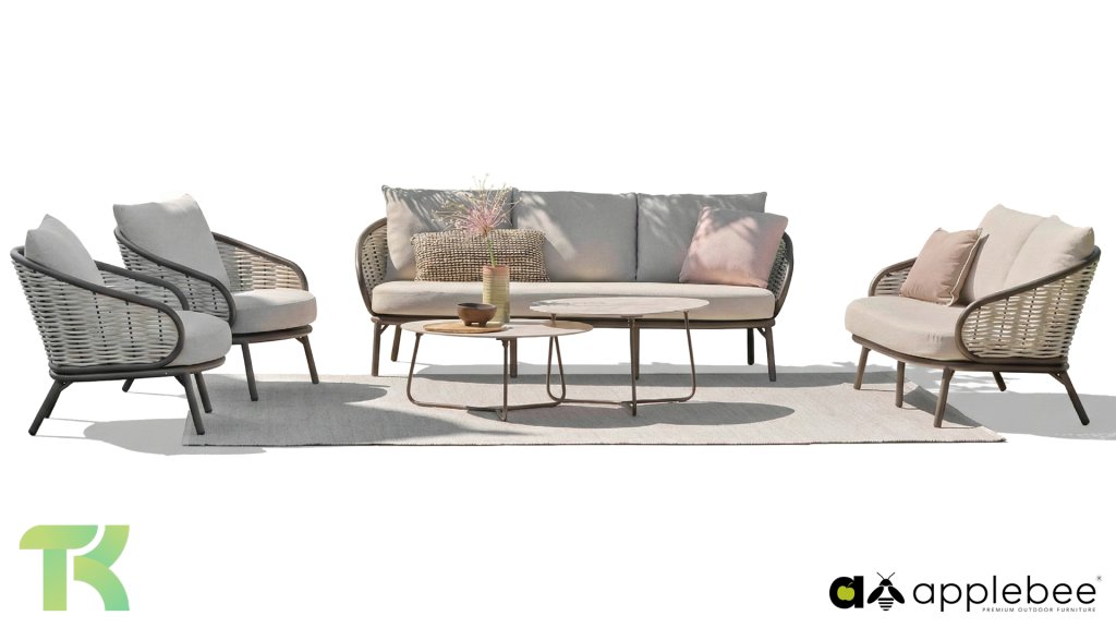 Kenmerkend voor Apple Bee is het gebruik van speciaal Biculair® vlechtwerk, oorspronkelijk ontwikkeld voor professionele toepassingen in de horeca. Dit Biculair® vlechtwerk is een natuurgetrouw, duurzaam alternatief voor rotan. Deze zeer duurzame synthetische rotanvezel (HDPE) is volledig weerbestendig, kleurecht, recyclebaar en dus een milieuvriendelijke keuze. Het uiterlijk en de prestaties van het meubilair blijven dus onaangetast door de Europese weersomstandigheden en de kleuren behouden hun natuurlijke levendigheid. De superieure kwaliteit van dit vlechtwerk, gecontroleerd door de Nederlandse Organisatie voor Toegepast Natuurwetenschappelijk Onderzoek (TNO), is duidelijk in vergelijking met andere vergelijkbare materialen.