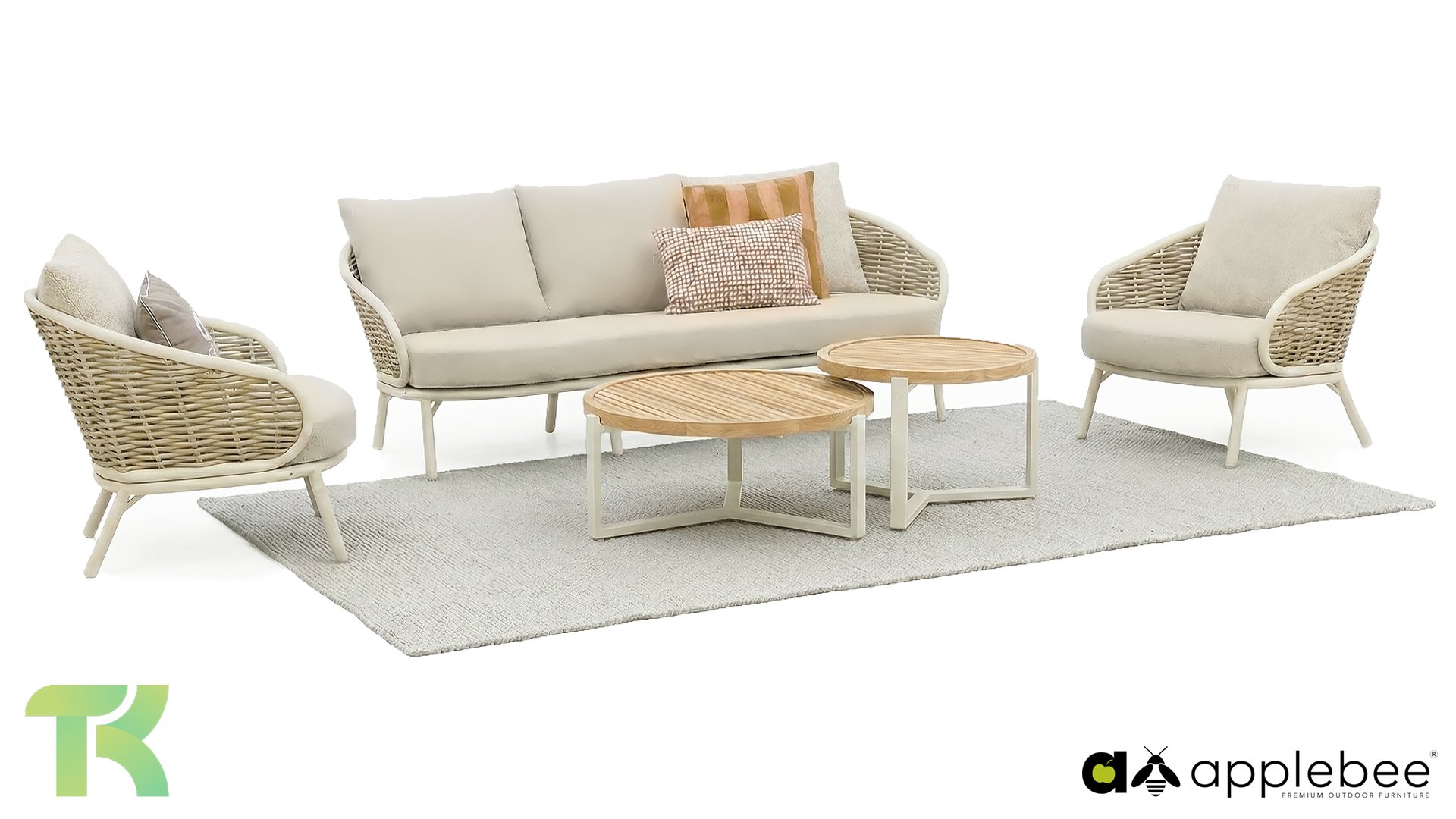 Kenmerkend voor Apple Bee is het gebruik van speciaal Biculair® vlechtwerk, oorspronkelijk ontwikkeld voor professionele toepassingen in de horeca. Dit Biculair® vlechtwerk is een natuurgetrouw, duurzaam alternatief voor rotan. Deze zeer duurzame synthetische rotanvezel (HDPE) is volledig weerbestendig, kleurecht, recyclebaar en dus een milieuvriendelijke keuze. Het uiterlijk en de prestaties van het meubilair blijven dus onaangetast door de Europese weersomstandigheden en de kleuren behouden hun natuurlijke levendigheid. De superieure kwaliteit van dit vlechtwerk, gecontroleerd door de Nederlandse Organisatie voor Toegepast Natuurwetenschappelijk Onderzoek (TNO), is duidelijk in vergelijking met andere vergelijkbare materialen.