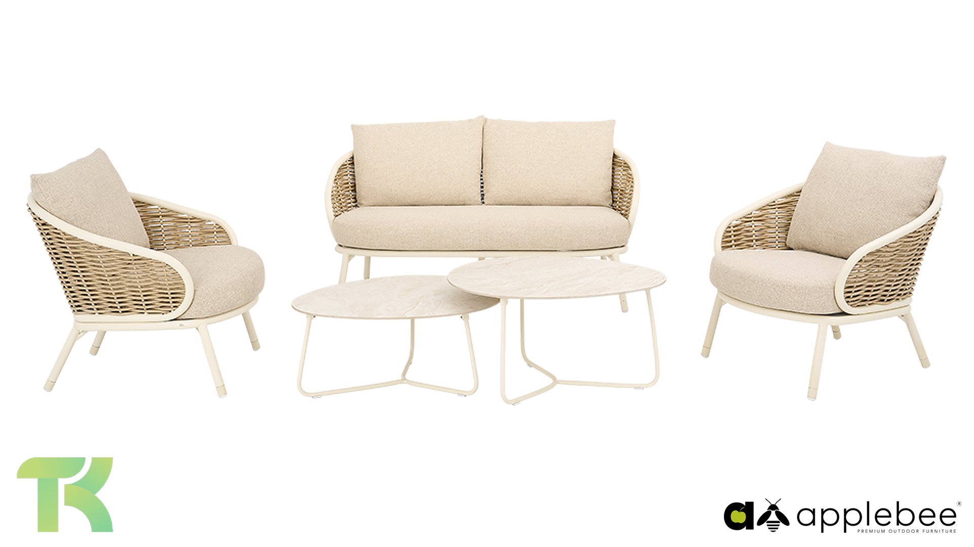 Kenmerkend voor Apple Bee is het gebruik van speciaal Biculair® vlechtwerk, oorspronkelijk ontwikkeld voor professionele toepassingen in de horeca. Dit Biculair® vlechtwerk is een natuurgetrouw, duurzaam alternatief voor rotan. Deze zeer duurzame synthetische rotanvezel (HDPE) is volledig weerbestendig, kleurecht, recyclebaar en dus een milieuvriendelijke keuze. Het uiterlijk en de prestaties van het meubilair blijven dus onaangetast door de Europese weersomstandigheden en de kleuren behouden hun natuurlijke levendigheid. De superieure kwaliteit van dit vlechtwerk, gecontroleerd door de Nederlandse Organisatie voor Toegepast Natuurwetenschappelijk Onderzoek (TNO), is duidelijk in vergelijking met andere vergelijkbare materialen.