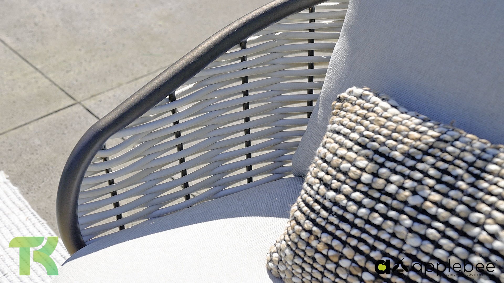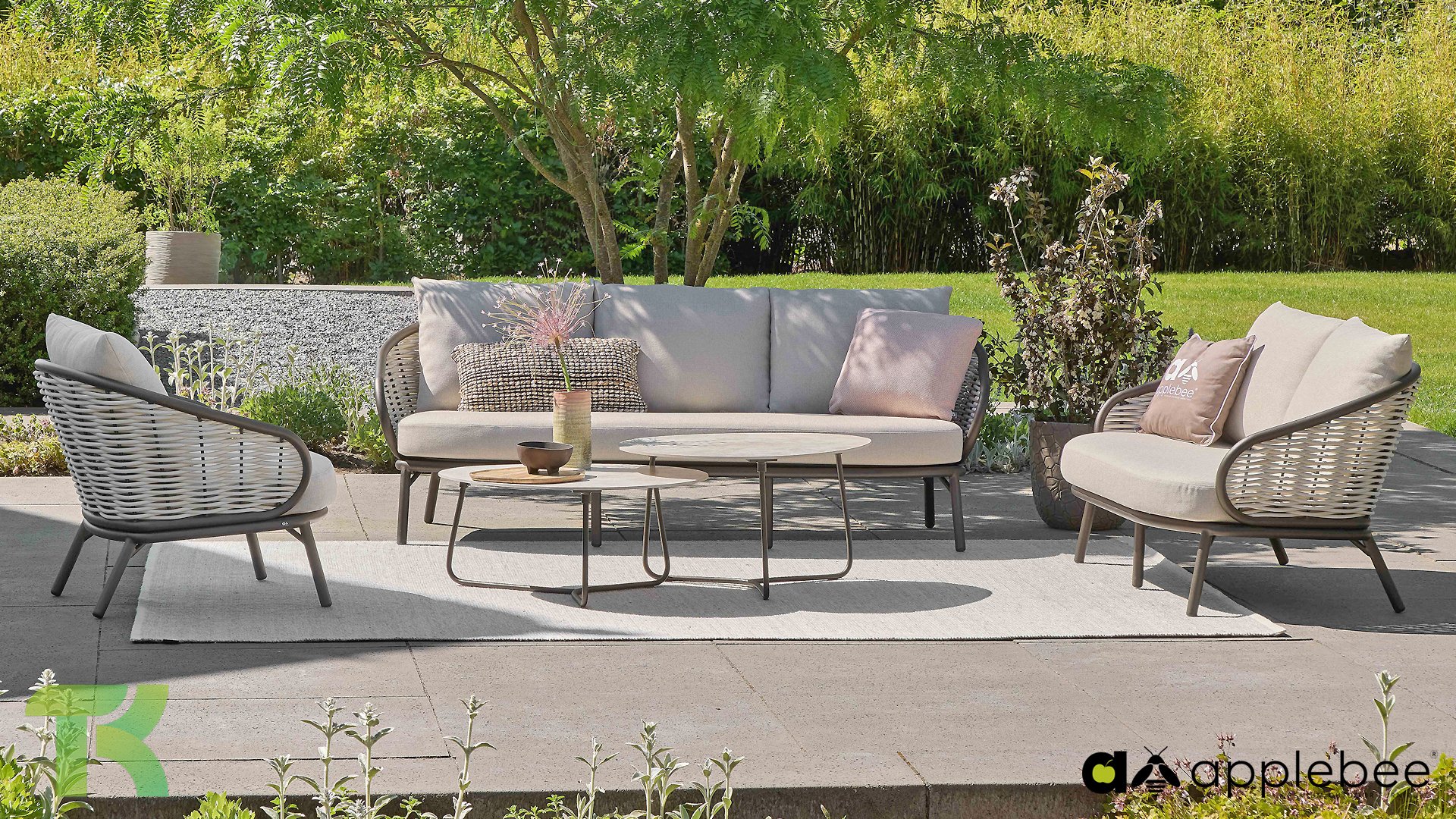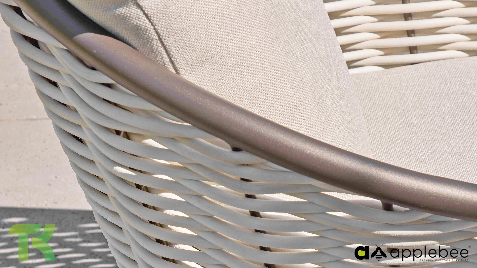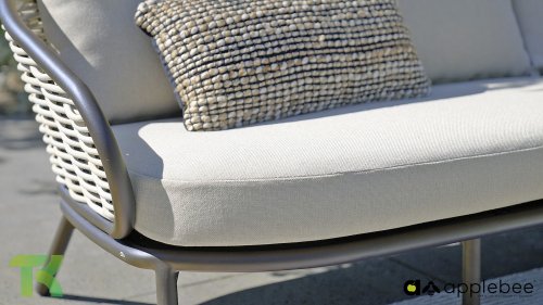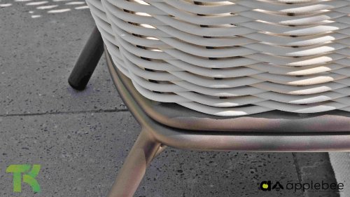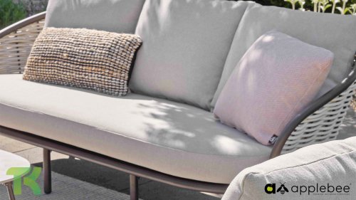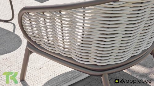 Kenmerkend voor Apple Bee is het gebruik van speciaal Biculair® vlechtwerk, oorspronkelijk ontwikkeld voor professionele toepassingen in de horeca. Dit Biculair® vlechtwerk is een natuurgetrouw, duurzaam alternatief voor rotan. Deze zeer duurzame synthetische rotanvezel (HDPE) is volledig weerbestendig, kleurecht, recyclebaar en dus een milieuvriendelijke keuze. Het uiterlijk en de prestaties van het meubilair blijven dus onaangetast door de Europese weersomstandigheden en de kleuren behouden hun natuurlijke levendigheid. De superieure kwaliteit van dit vlechtwerk, gecontroleerd door de Nederlandse Organisatie voor Toegepast Natuurwetenschappelijk Onderzoek (TNO), is duidelijk in vergelijking met andere vergelijkbare materialen.