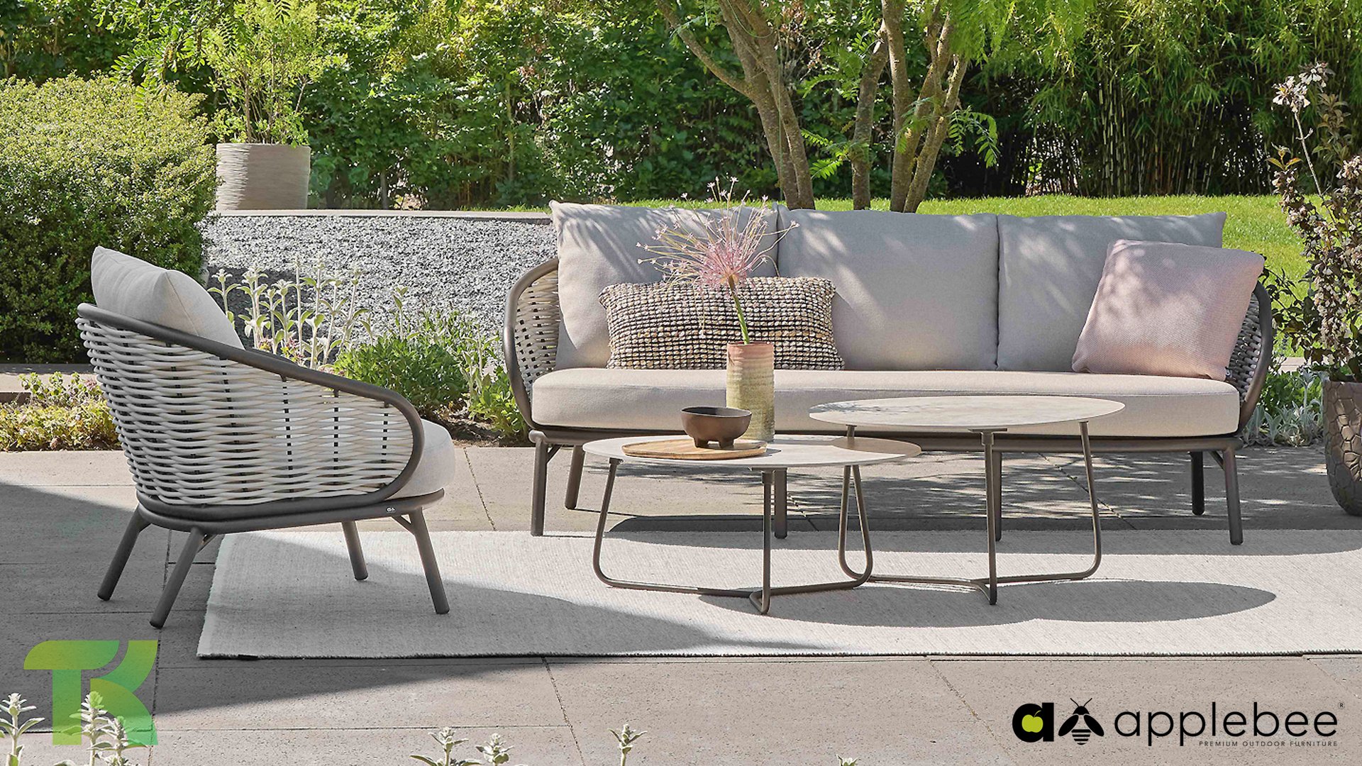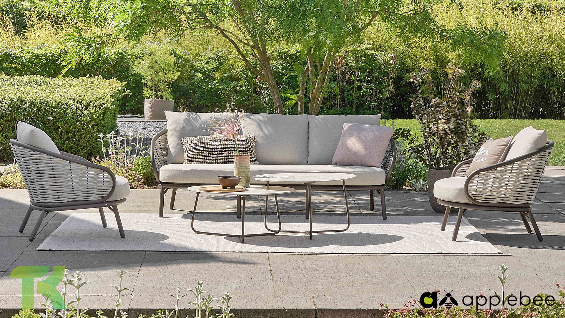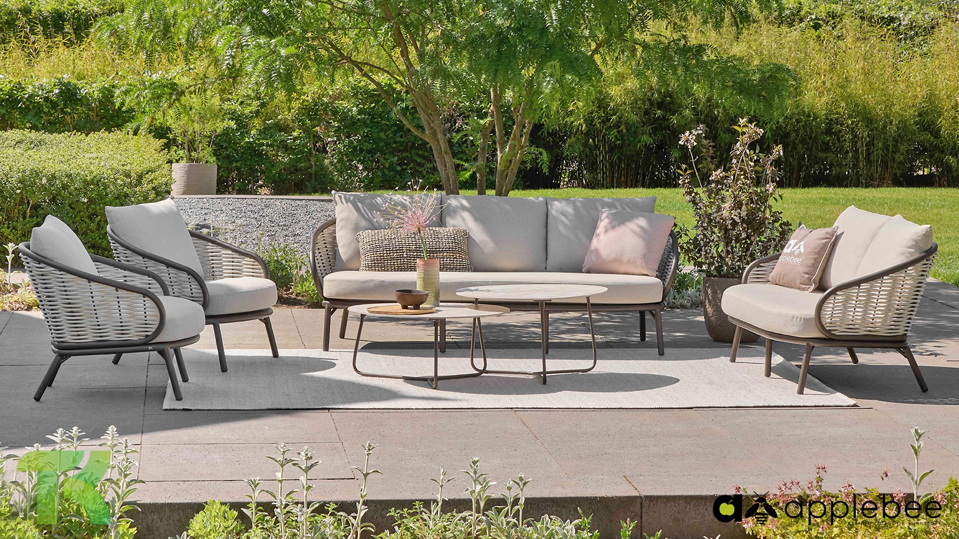 Kenmerkend voor Apple Bee is het gebruik van speciaal Biculair® vlechtwerk, oorspronkelijk ontwikkeld voor professionele toepassingen in de horeca. Dit Biculair® vlechtwerk is een natuurgetrouw, duurzaam alternatief voor rotan. Deze zeer duurzame synthetische rotanvezel (HDPE) is volledig weerbestendig, kleurecht, recyclebaar en dus een milieuvriendelijke keuze. Het uiterlijk en de prestaties van het meubilair blijven dus onaangetast door de Europese weersomstandigheden en de kleuren behouden hun natuurlijke levendigheid. De superieure kwaliteit van dit vlechtwerk, gecontroleerd door de Nederlandse Organisatie voor Toegepast Natuurwetenschappelijk Onderzoek (TNO), is duidelijk in vergelijking met andere vergelijkbare materialen.