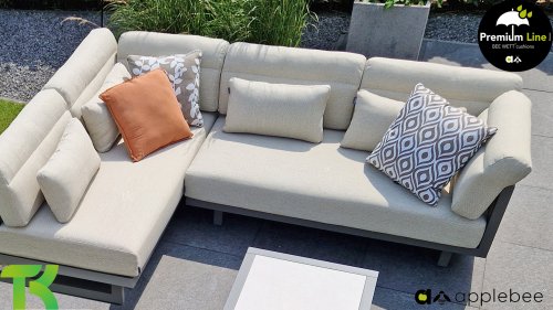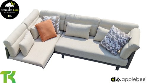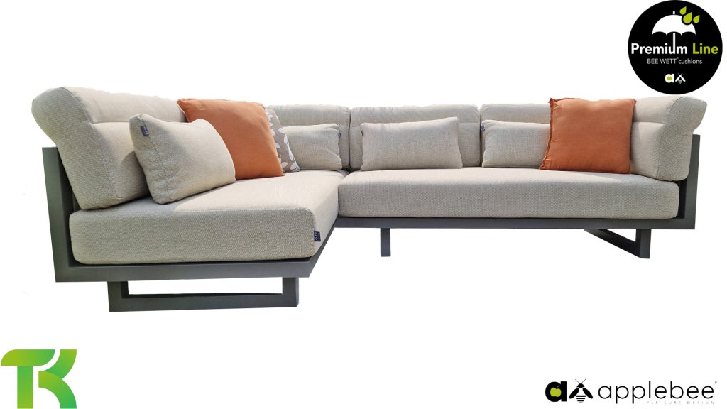 De arm– en rugkussens van de Santorini zijn bijzonder en buigen zich iets over de leuningen. Ze geven zo een zachte touch aan de verder strakke lijnen. Hierdoor kun je ook heerlijk languit liggen. Comfortabele lendekussens zijn inclusief bij de Santorini. Hierdoor kun je je helemaal innestelen en zelfs op de wat killere dagen een knusse plek creëren. Bekijk hier de Apple Bee Santorini met gestoffeerde panelen.