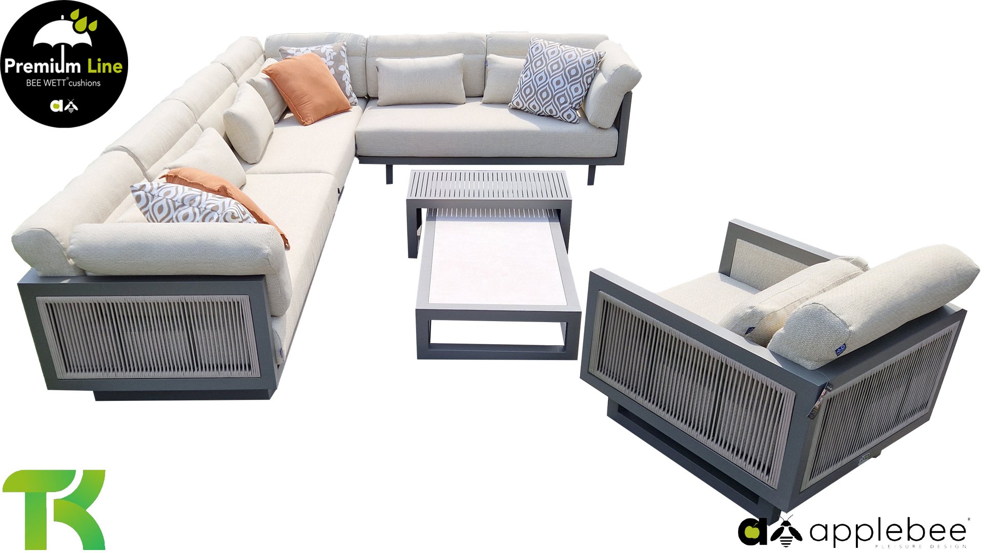 De arm– en rugkussens van de Santorini zijn bijzonder en buigen zich iets over de leuningen. Ze geven zo een zachte touch aan de verder strakke lijnen. Hierdoor kun je ook heerlijk languit liggen. Comfortabele lendekussens zijn inclusief bij de Santorini. Hierdoor kun je je helemaal innestelen en zelfs op de wat killere dagen een knusse plek creëren. Bekijk hier de Apple Bee Santorini met gestoffeerde panelen.