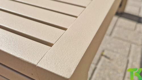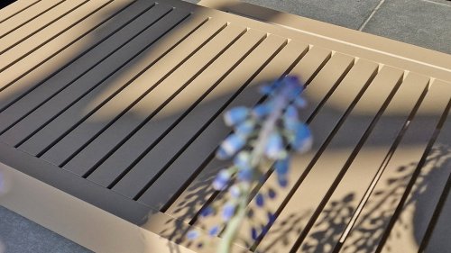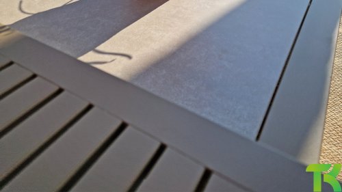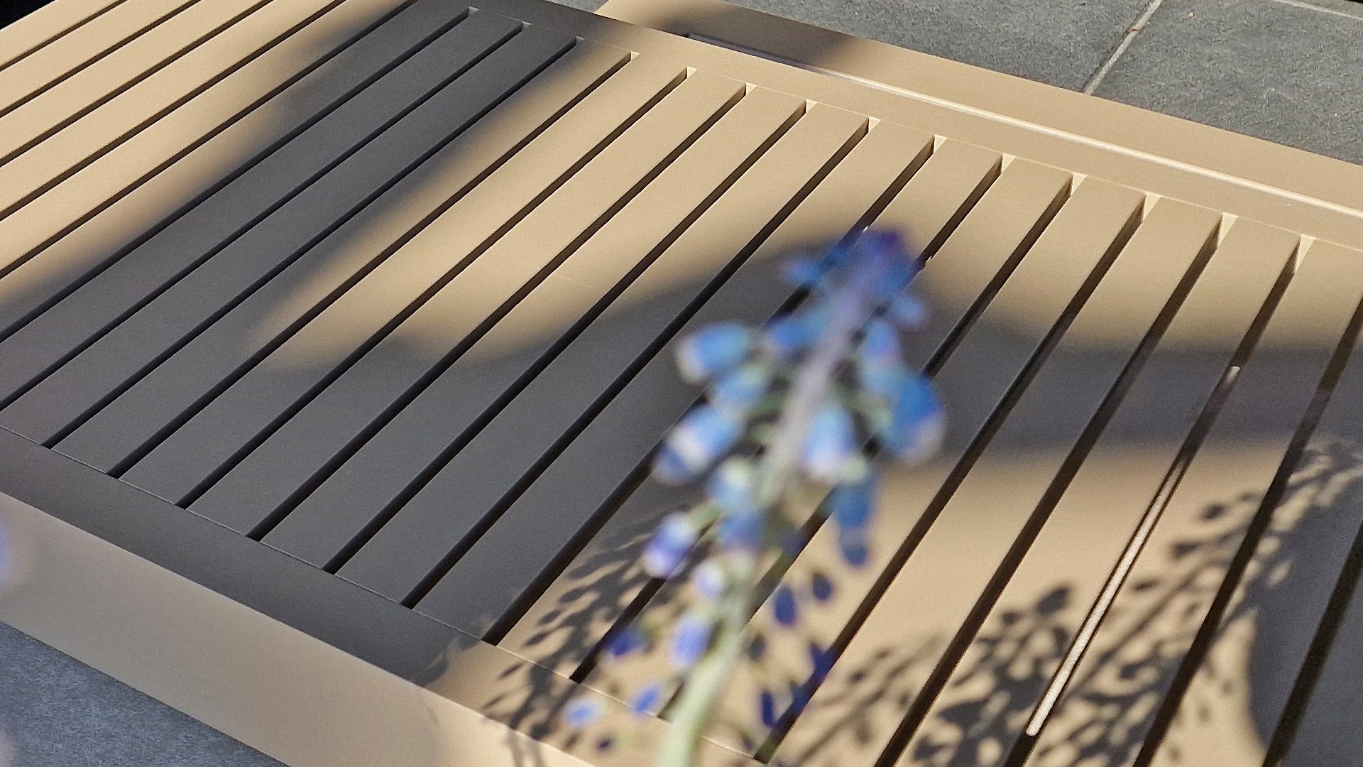 Het aluminium frame is met een stevige poedercoating gelakt en is weerbestendig en bestand tegen UV-straling. Aluminium is niet aan roest onderhevig, is tijdloos en stijlvol.