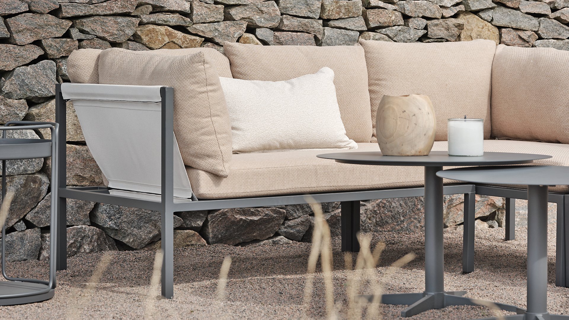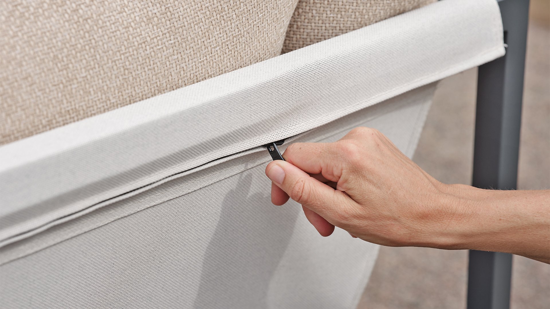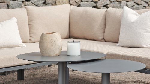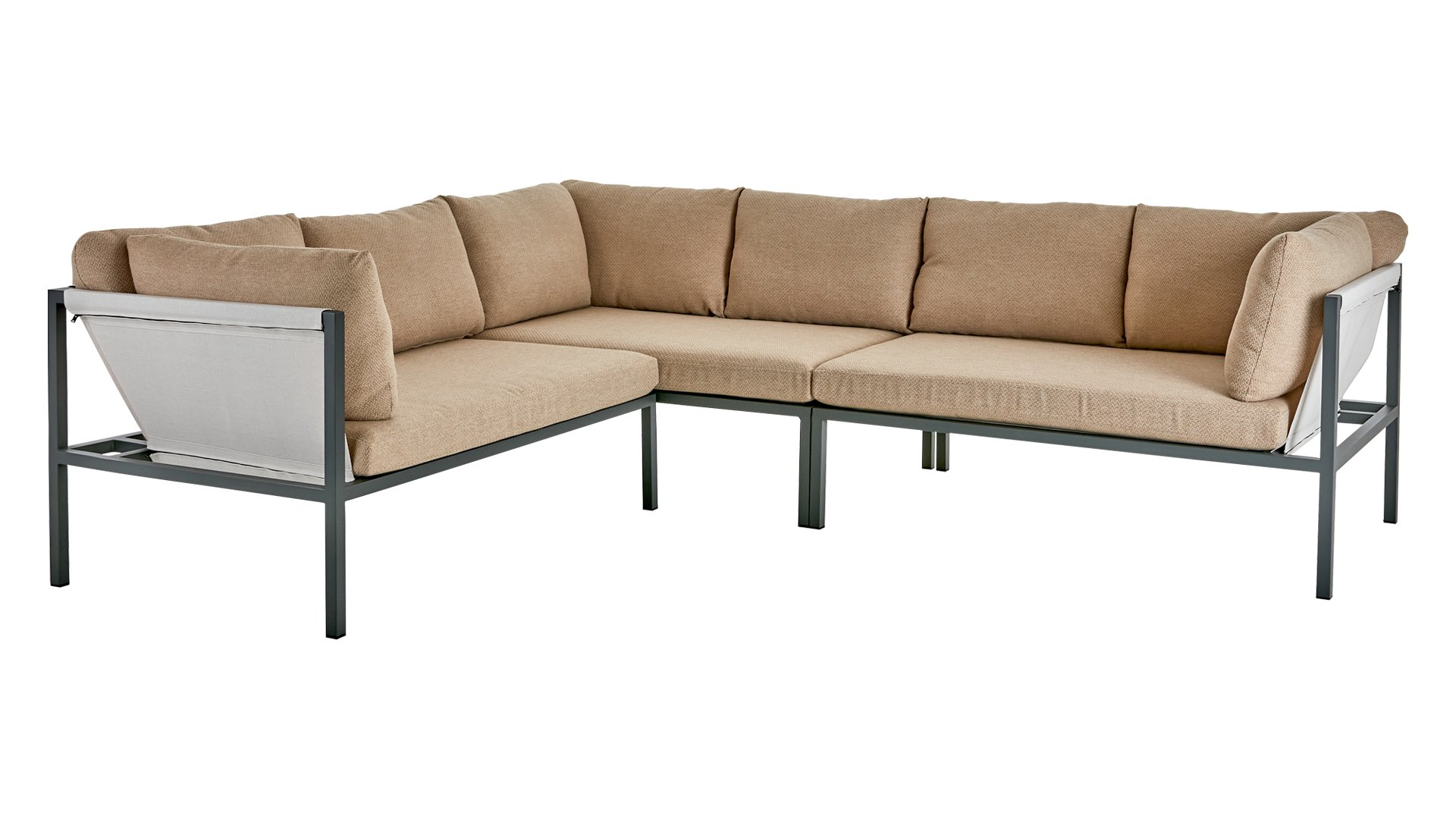 Allie - alles in één doos. Ervaar de perfecte mix van eenvoud en verfijning van het ontwerp, zoals elk element: van het aluminium frame tot de levendige zitting van textiel. Comfortabele kussens in een moderne gerstkleurige stof. - alles wordt netjes verpakt in één doos. Het samenstellen van uw buitenoase was nog nooit zo eenvoudig, zodat u zich kunt concentreren op het genieten van uw ruimte in plaats van op de inrichting. Door de slimme constructie is hij bovendien gemakkelijk op te bergen in de winter.