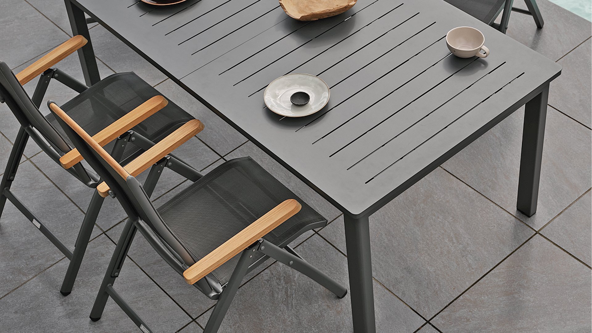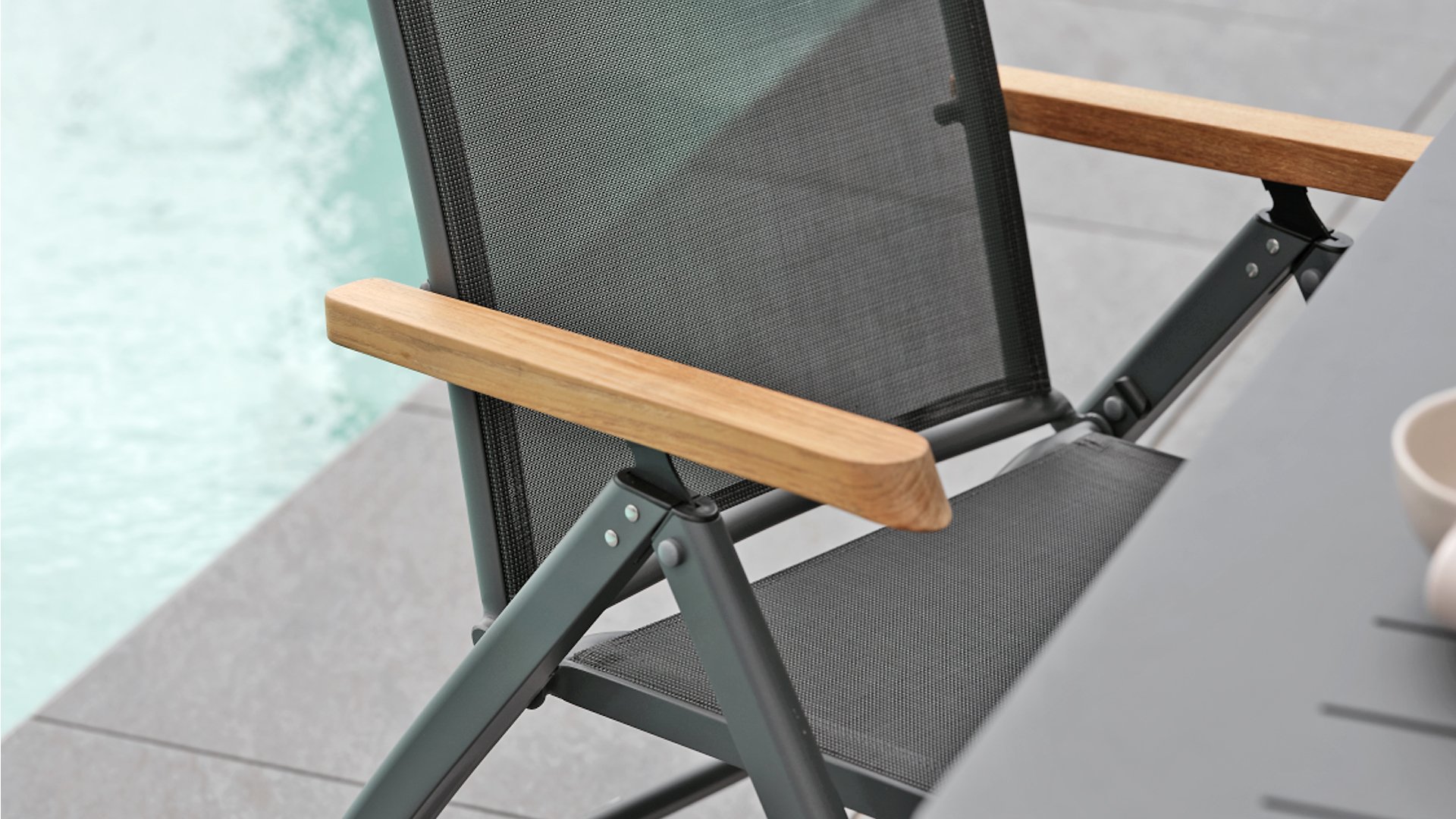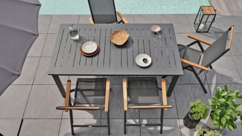 1 x Brafab Andy tuinstoel verstelbaar aluminium antraciet/teak