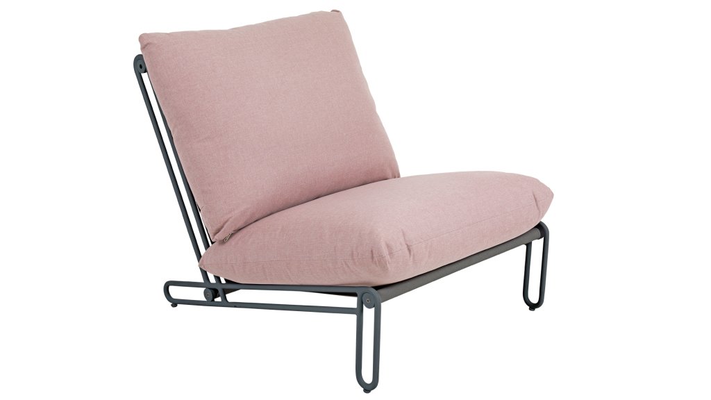 Een comfortabele fauteuil die een statement maakt. De schuin aflopende zitting en open aluminium frame creëren een heerlijke plek om te ontspannen. De kussens zijn er in roze, grijs en beige. De BRAFAB BLIXT sectionele zitbank voor buiten maakt deel uit van het BRAFAB-assortiment buitenmeubilair en is een moderne bouwbare bank met een aluminium frame en een zitting van textilene. De comfortabele kussens zijn van waterafstotend Olefin stof. Elke stoel kan worden gebruikt als een vrijstaande fauteuil of aan elkaar worden gekoppeld om een buitenbank te maken, zo lang als je wilt!