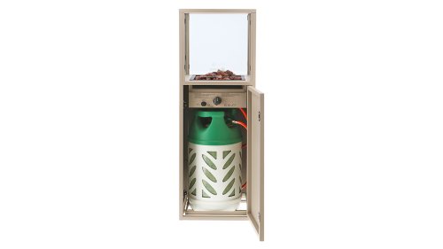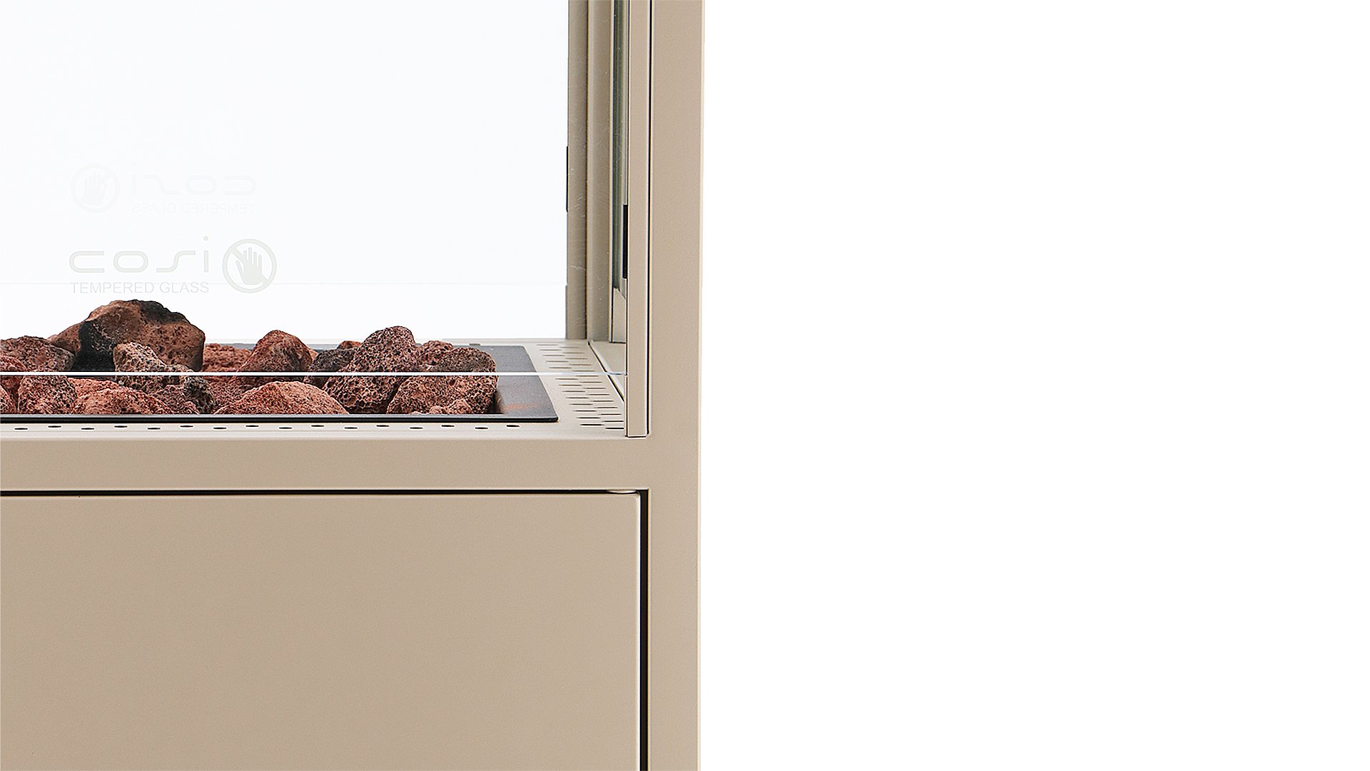 De Cosiscoop Pillar wordt geleverd inclusief 30mBar regelaar met gasslang, glas en kiezelstenen.