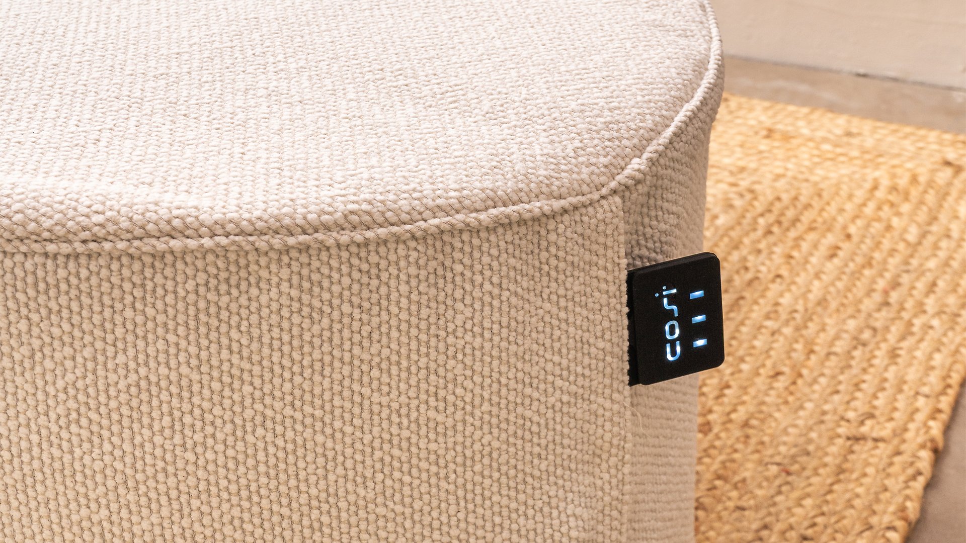 De eco-friendly Cosipouf heeft een enkel infrarood warmte-element en verwarmt direct op het lichaam. Hierdoor gaat er geen warmte verloren in de (buiten)lucht. De Cosipouf beschikt over drie warmtestanden, laag 38°C, middel 45°C en hoog 50°C, die eenvoudig te selecteren zijn via de bedieningsknop aan de poef. Bij gebruik van de poef met de laagste warmtestand (+/-38°C) gaat de batterij gemiddeld 5 uur mee. Op de hoogste warmtestand (+/-50°C) is de gebruiksduur gemiddeld 2 uur. De batterij kun je eenvoudig loskoppelen en opladen met de oplader die wordt bijgeleverd in het pakket.