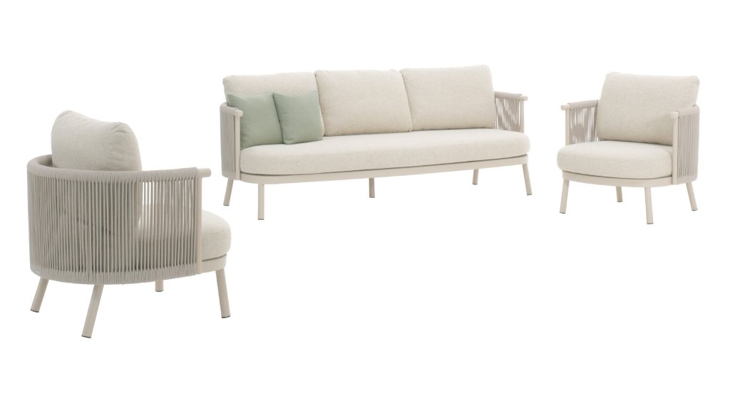 - Hoogwaardige materialen: weerbestendige kussens, een stevig aluminium frame en rope-details die jarenlang mooi blijven.