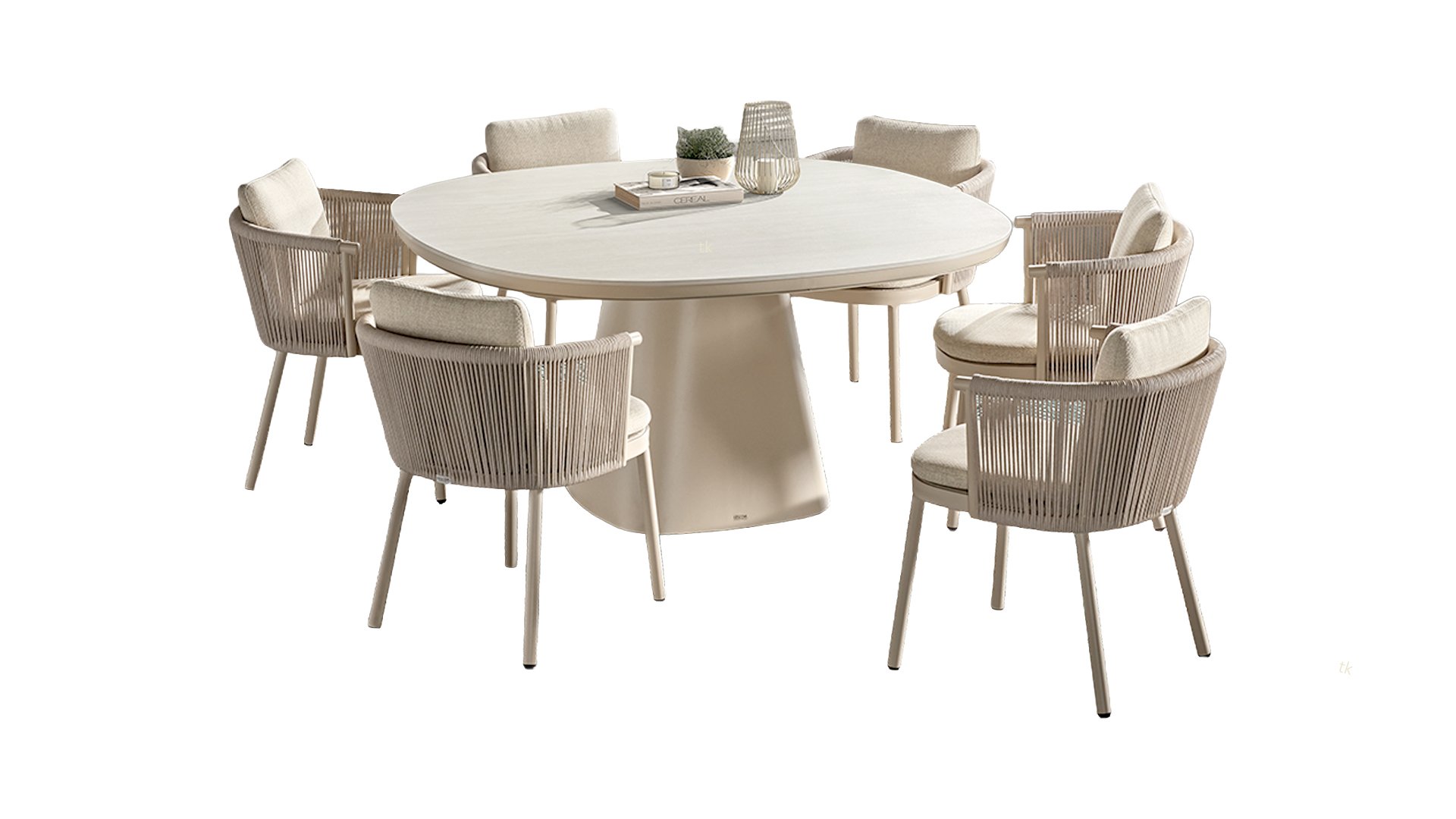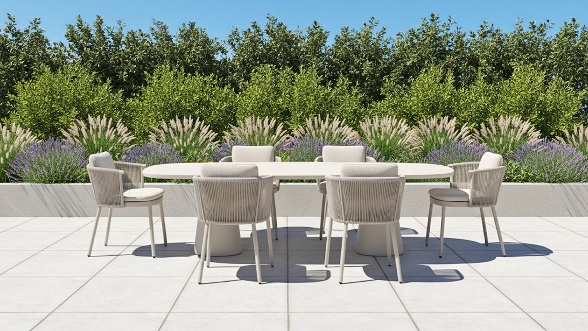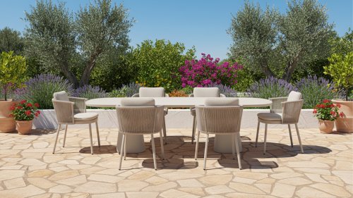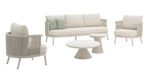 - Hoogwaardige materialen: weerbestendige kussens, een stevig aluminium frame en rope-details die jarenlang mooi blijven.