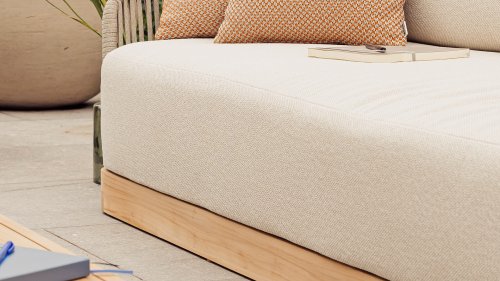 Water loopt dwars door het speciale schuim, terwijl een ander materiaal, Dacron, ervoor zorgt dat de kussens hun oorspronkelijke vorm behouden. De hoes is uitritsbaar en wasbaar.