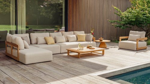 Het hoogwaardige teak geeft het loungeset een warme, natuurlijke look en staat bekend om zijn sterke, duurzame karakter. Dit is buitenkwaliteit die je ziet én voelt.