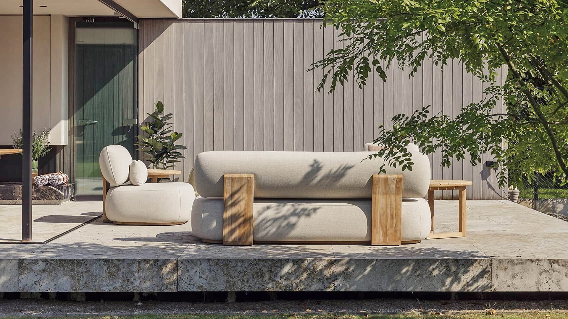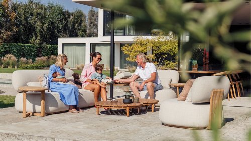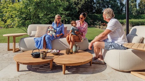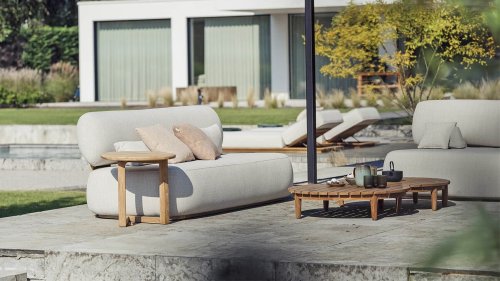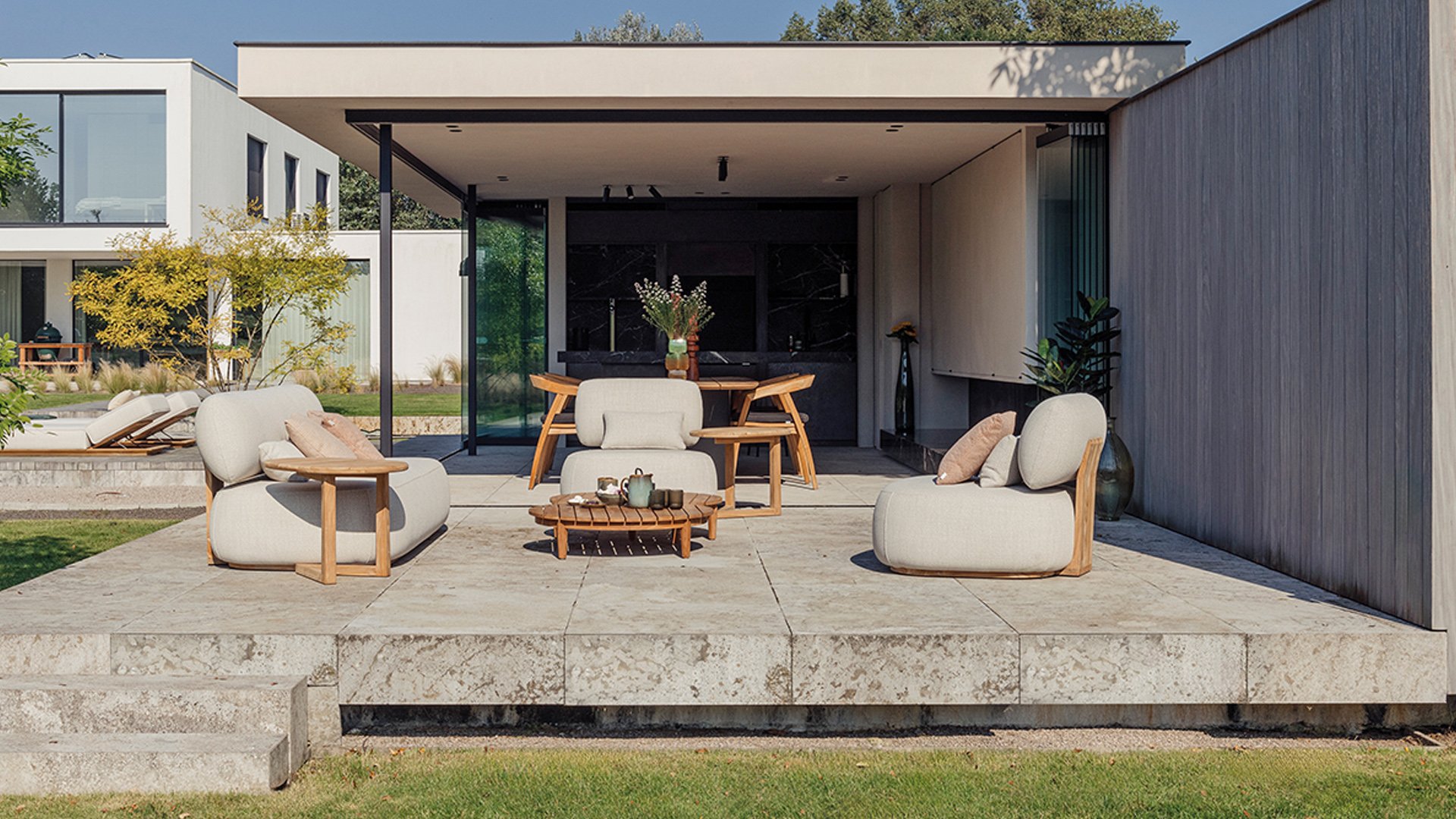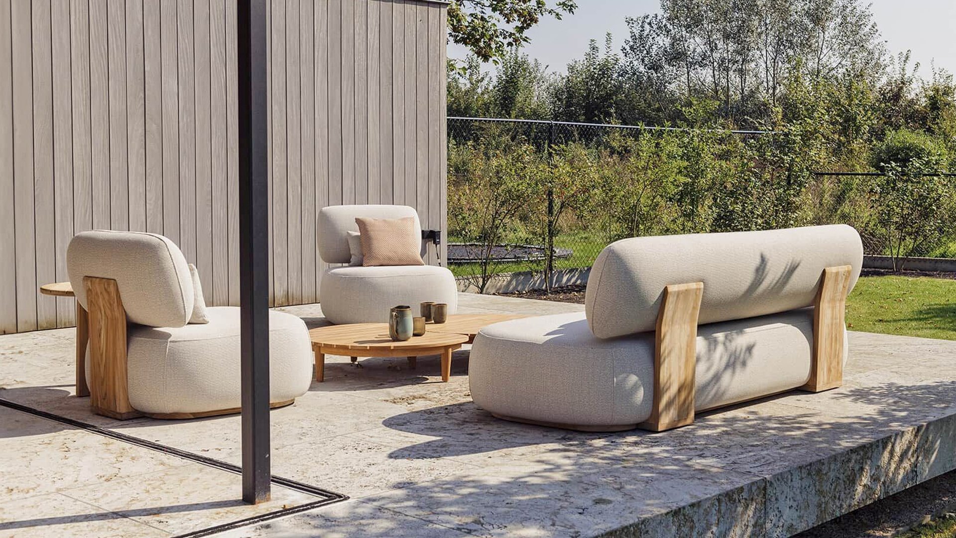 Loungeset Ruby van Gescova – Zachte vormen, warm teak & Belgisch design