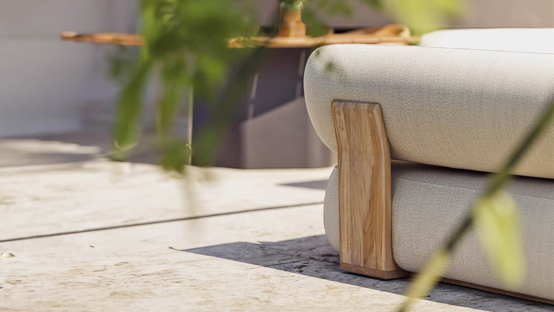 De zorgvuldig afgewerkte teakhouten details geven de Ruby loungeset een natuurlijke, warme uitstraling. Teak staat bekend om zijn duurzaamheid en tijdloze charme en vormt een prachtig contrast met de moderne materialen van het frame. Dit maakt de loungeset niet alleen comfortabel, maar ook een echte eyecatcher in je tuin of op je terras.