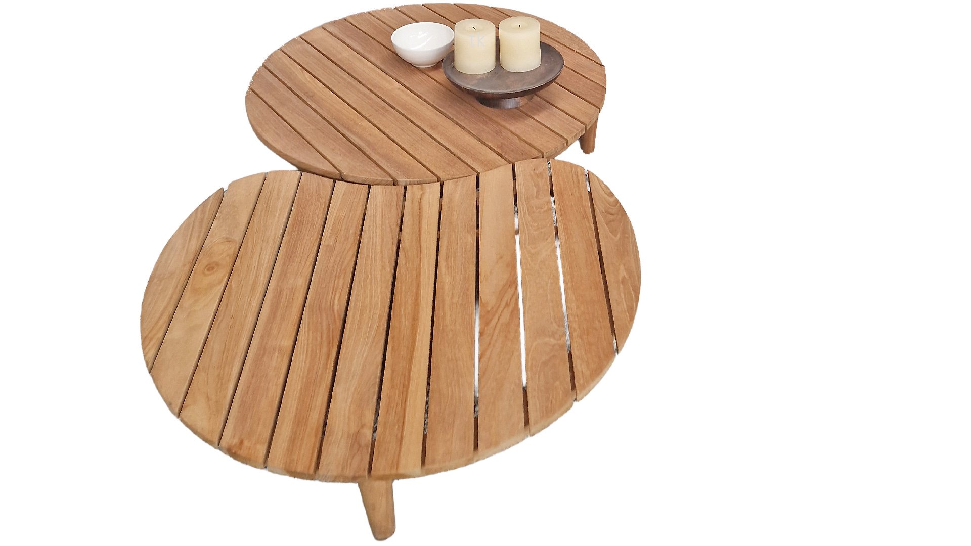 1 x Gescova Santorini salontafel Teak Half Moon Ø90x70xH21cm
