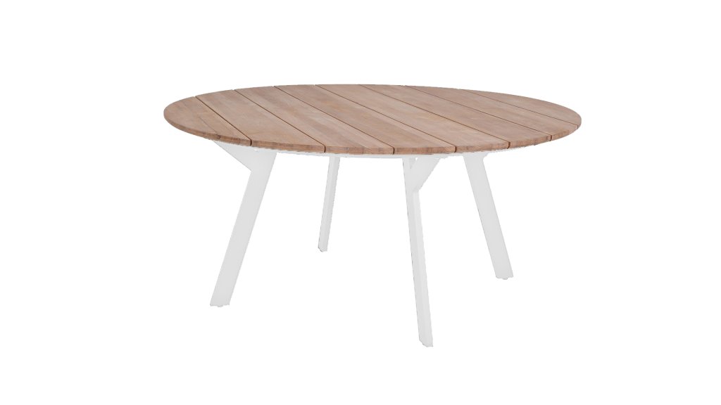 De ruime Greenchair Noble diningtafel heeft een doorsnede van 160cm. Het teakhouten blad in combinatie met de gepoedercoate aluminium poot is zeer geschikt voor buiten. Greenchair werkt uitsluitend met gecertificeerd teakhout. Zo weet u dat ook de komende generatie kan genieten van teakhouten meubelen.