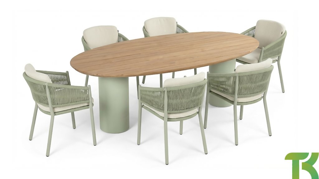 1 x Hartman Malaga tafel Alu Soft Green - Teak 220x120cm