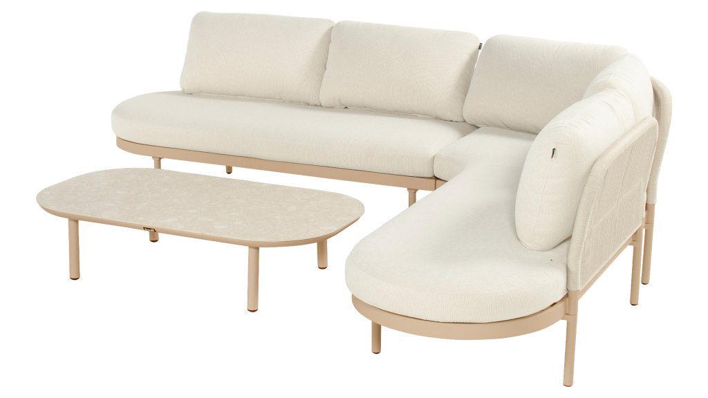 De Bilboa loungeset van HARTMAN combineert warme tinten met tijdloos design. De beige kussens bieden heerlijk zitcomfort, terwijl het aluminium frame stevig en onderhoudsvriendelijk blijft. De bijpassende salontafel maakt het geheel af.