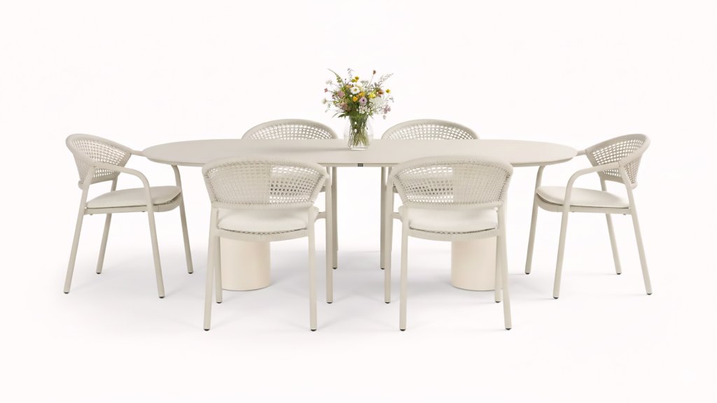 Aluminium is erg onderhoudsvriendelijk en lichtgewicht, net zoals ons vlechtwerk dat is. Deze praktische meubelen zijn gemakkelijk te reinigen. Ons aluminium met een stevige poedercoating is weerbestendig, en bestand tegen UV-straling. Aluminium is niet aan roest onderhevig, is tijdloos en stijlvol.